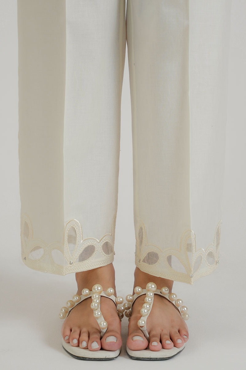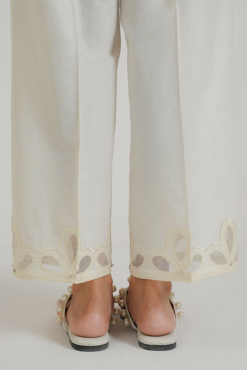 STRAIGHT PANTS,CAMBRIC,ORGANZA CUTWORK+EMBROIDERY