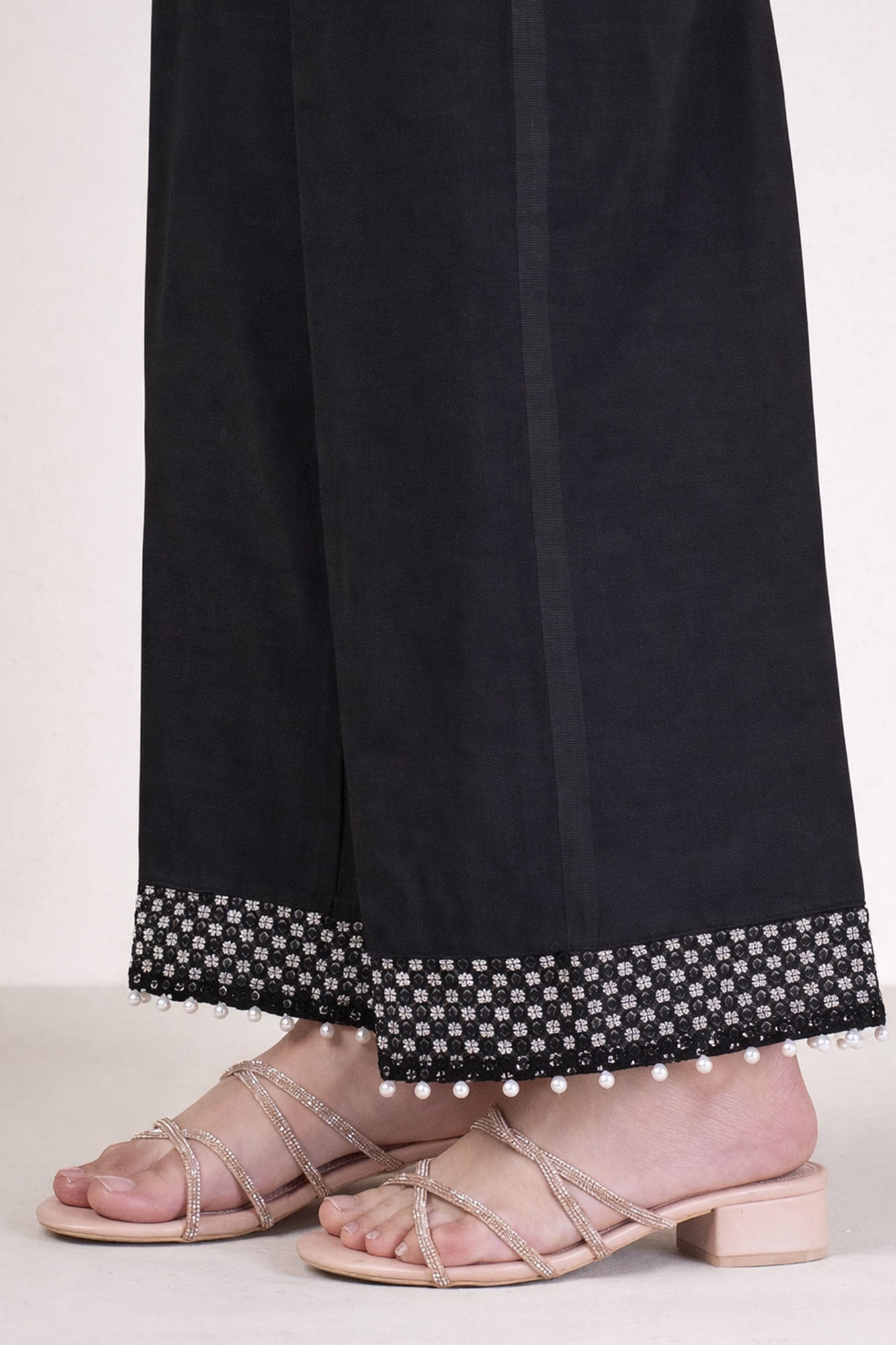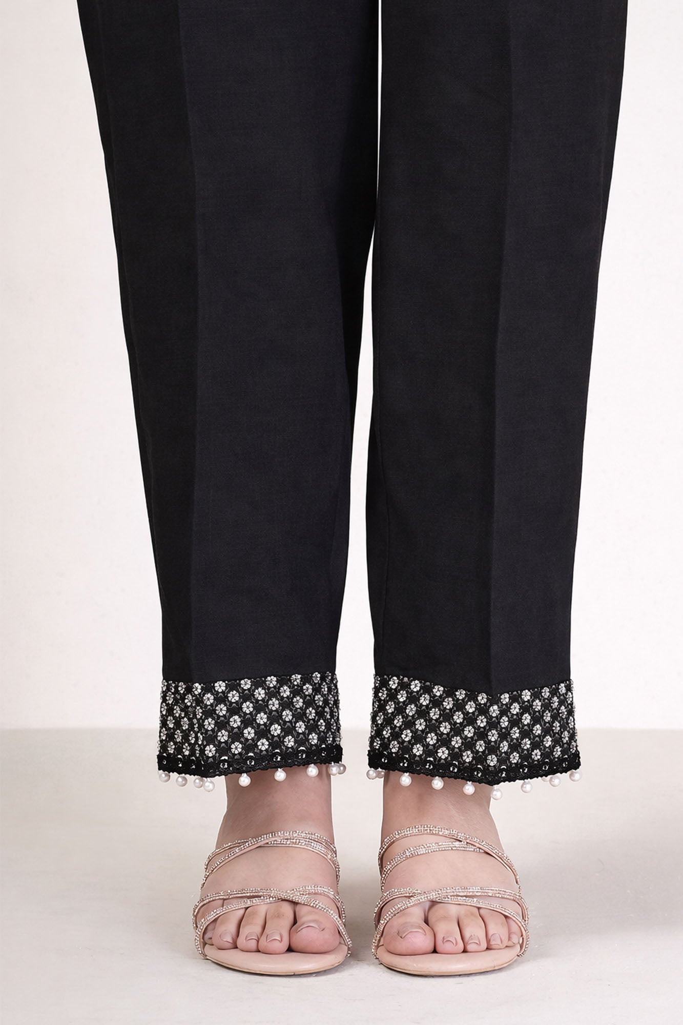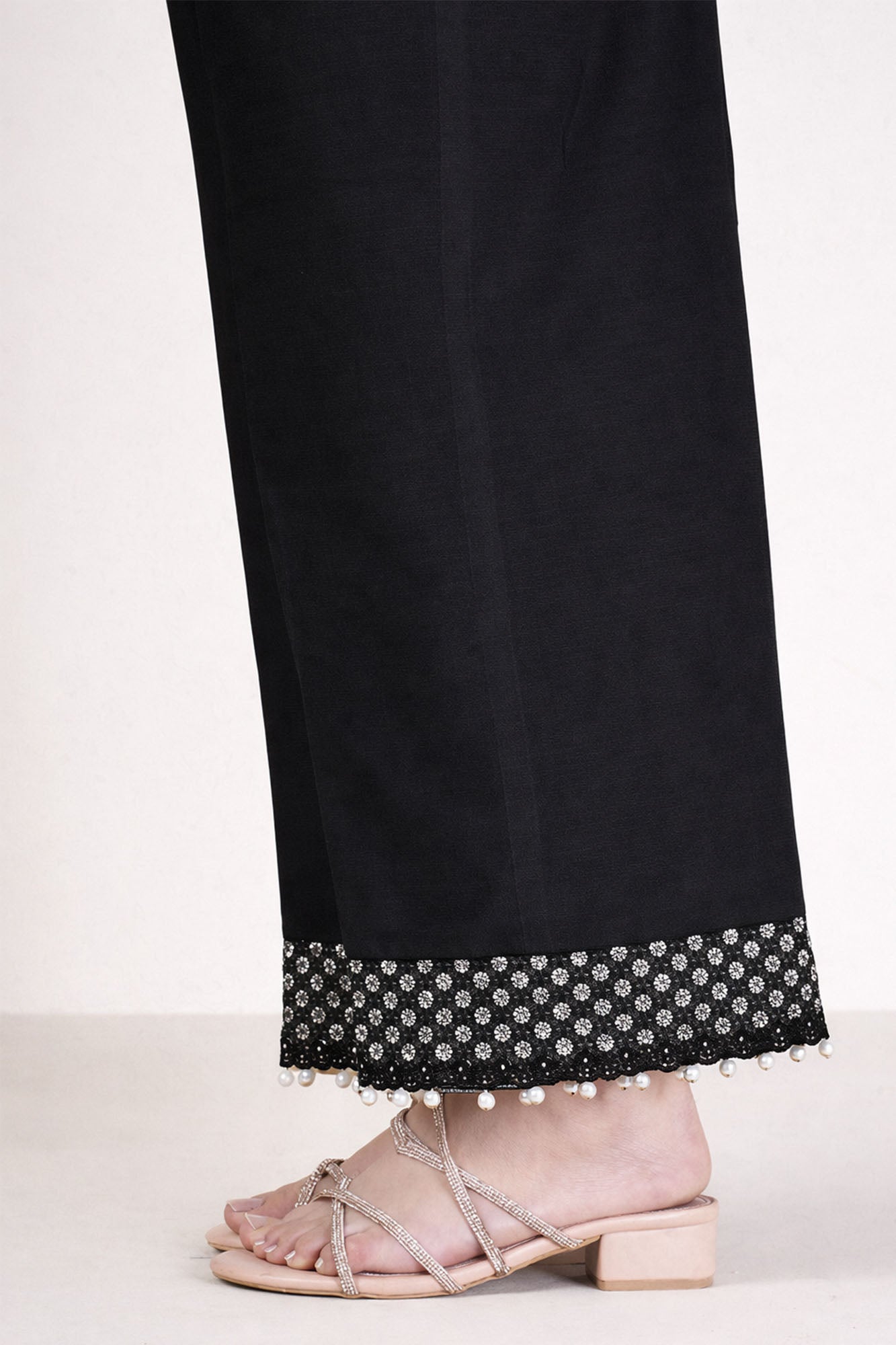SILK EMBROIDERED WITH TASSELING STRAIGHT PANTS