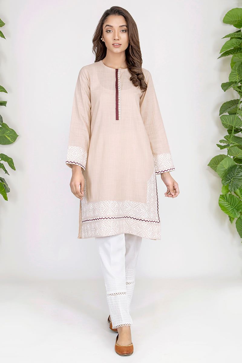 TEXTURED COTTON EMBELLISHED READY TO WEAR SHIRT
