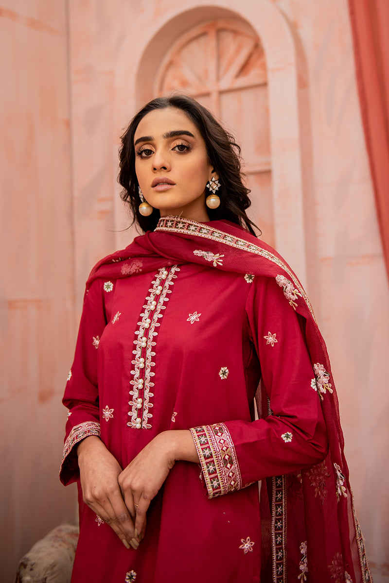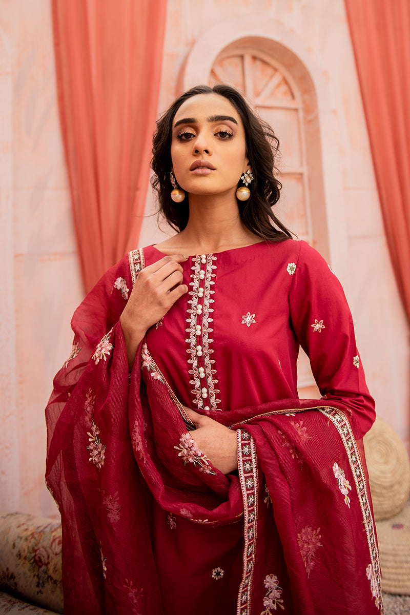 - Carmin rose is a two-piece outfit featuring a classic embroidered lawn shirt with pearl embellishment paired with an intricately embroidered net dupatta. Style the outfit with silver sandals and white bottoms.