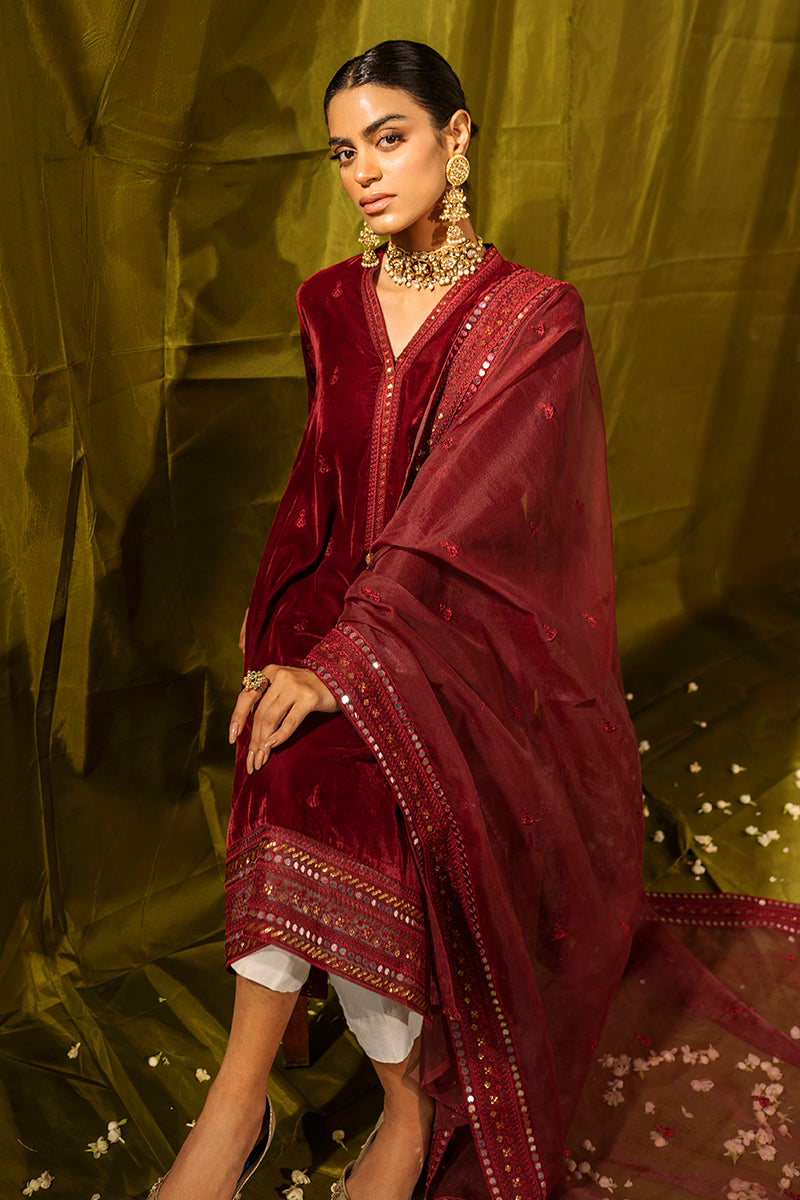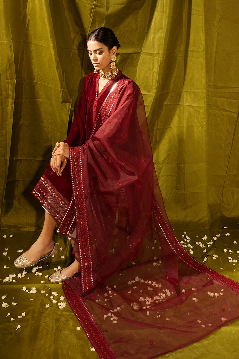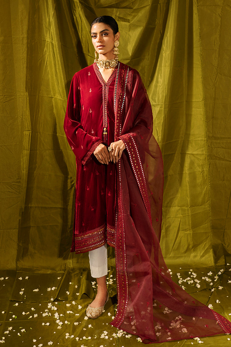 CARMINE BLOOM-2PC (SHIRT & DUPATTA)