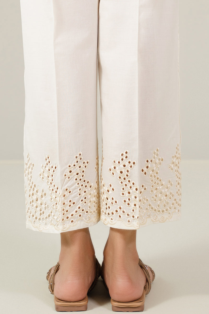 CAMBRIC SCHIFFLI EMBROIDERED STRAIGHT PANTS