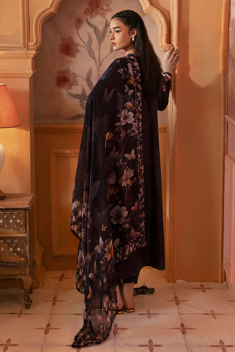 Elevate your style with CAVIAR CHARM-3PC PRINTED LAWN SUIT. The lawn printed & embroidered shirt features a printed back and 40" embroidered patti, while the cambric dyed trouser and silk printed dupatta complete the look. Perfect for a sophisticated and stylish ensemble.