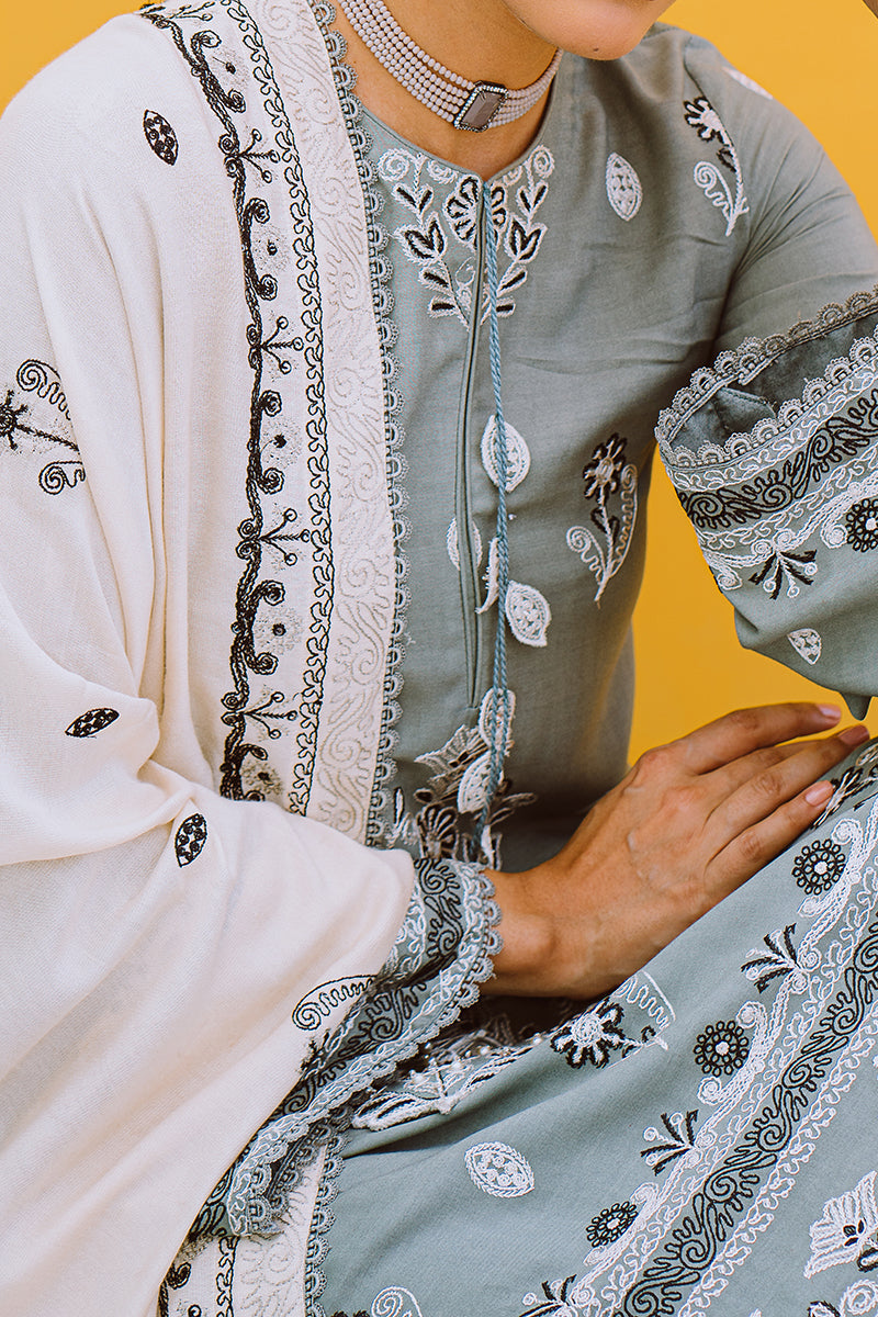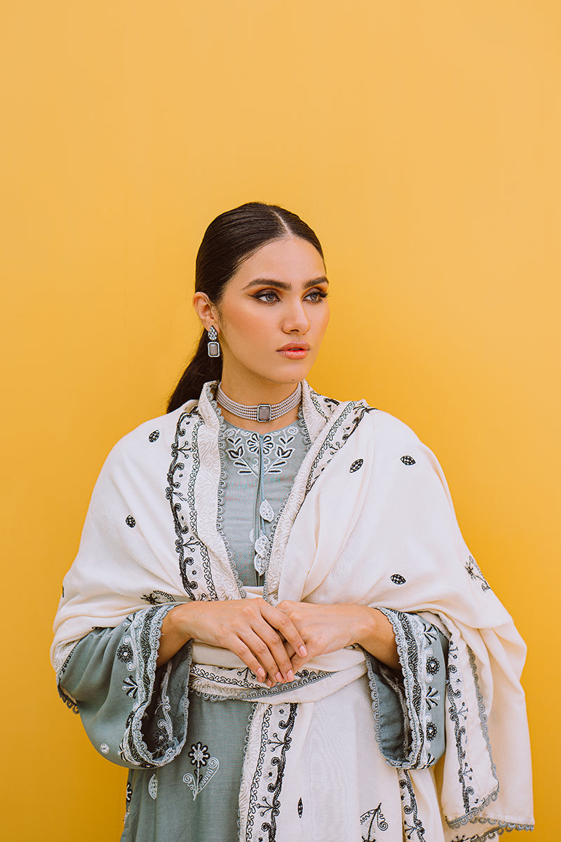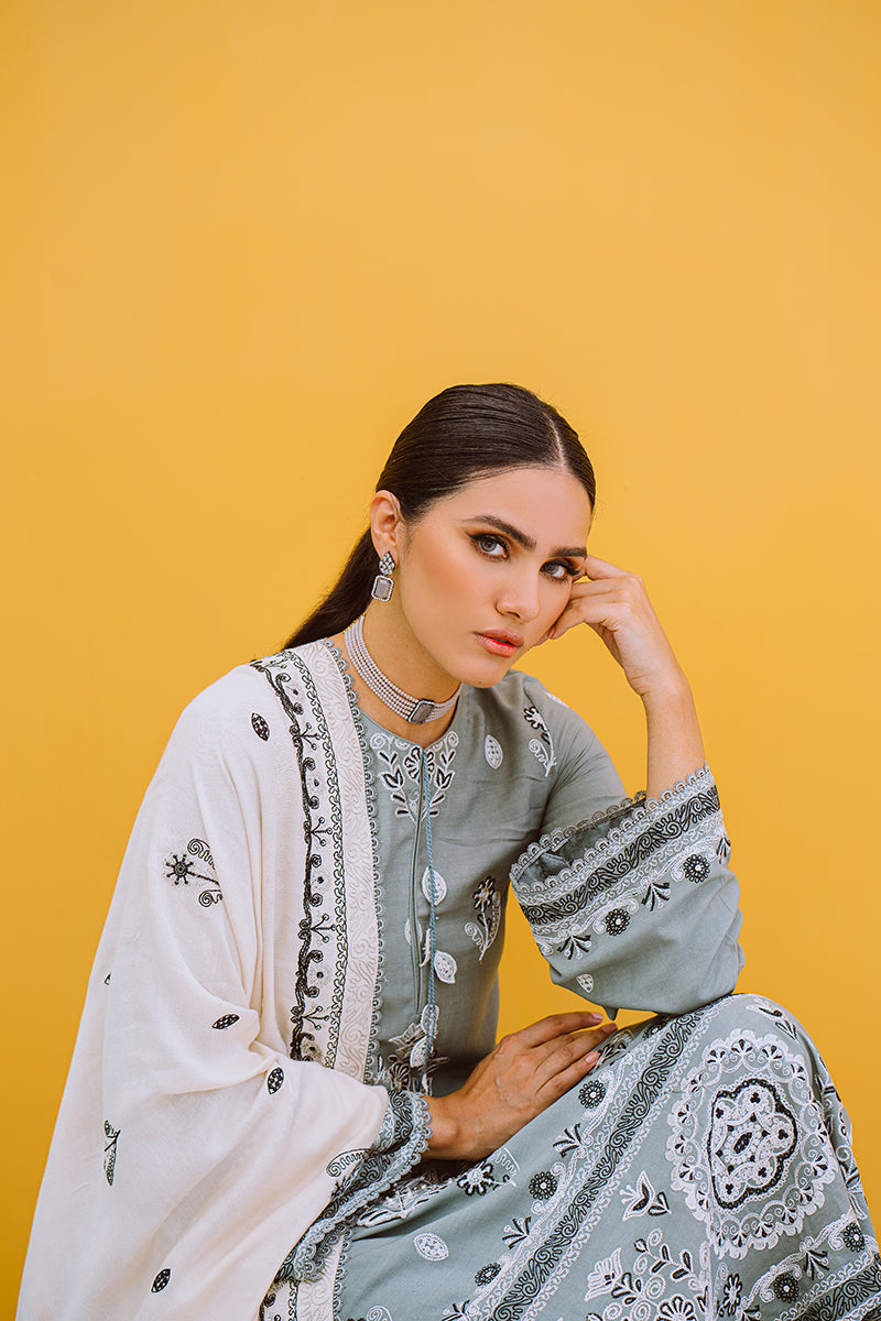 DYED EMBROIDERED LINEN FRONT, AND SLEEVES,DIGITAL PRINTED BACK