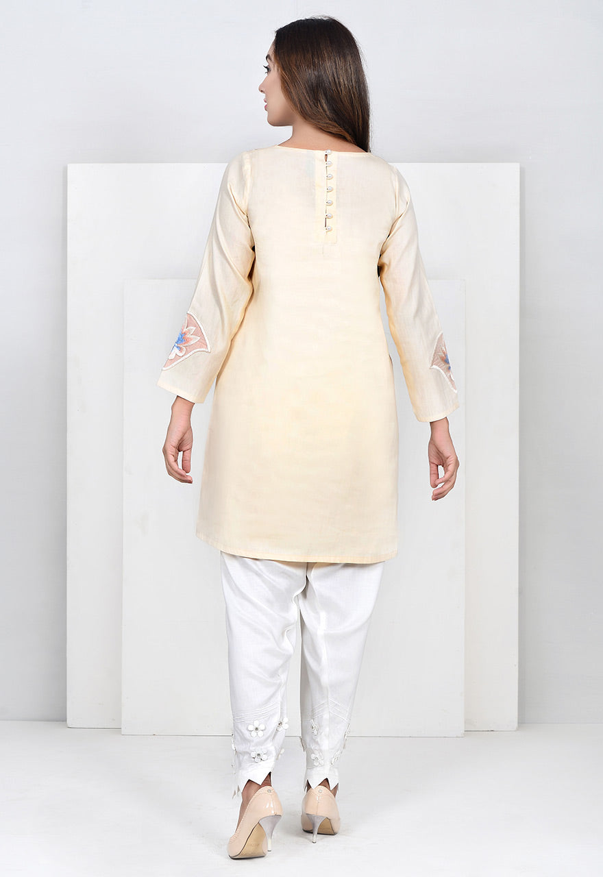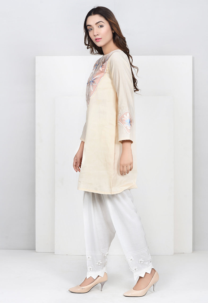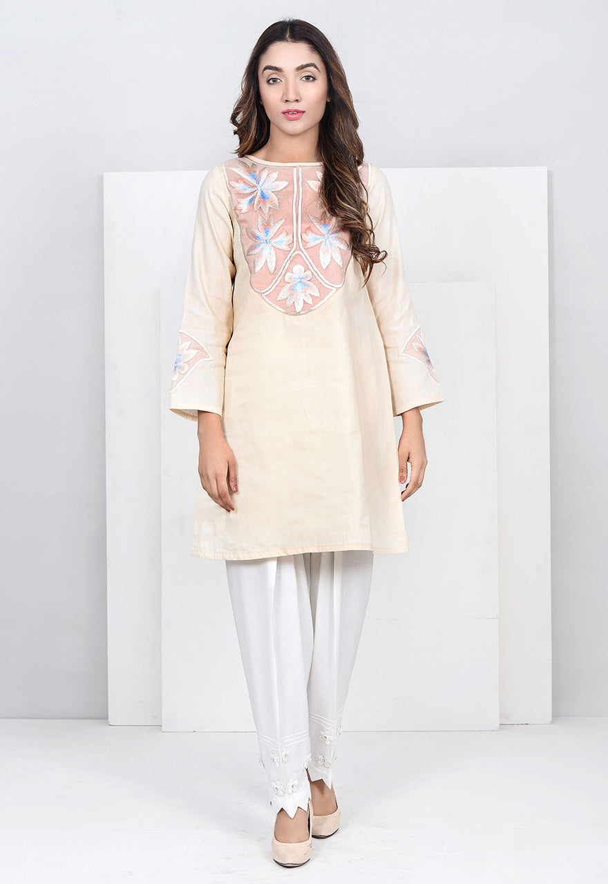 COTTON SATIN EMBROIDERED READY TO WEAR SHIRT.