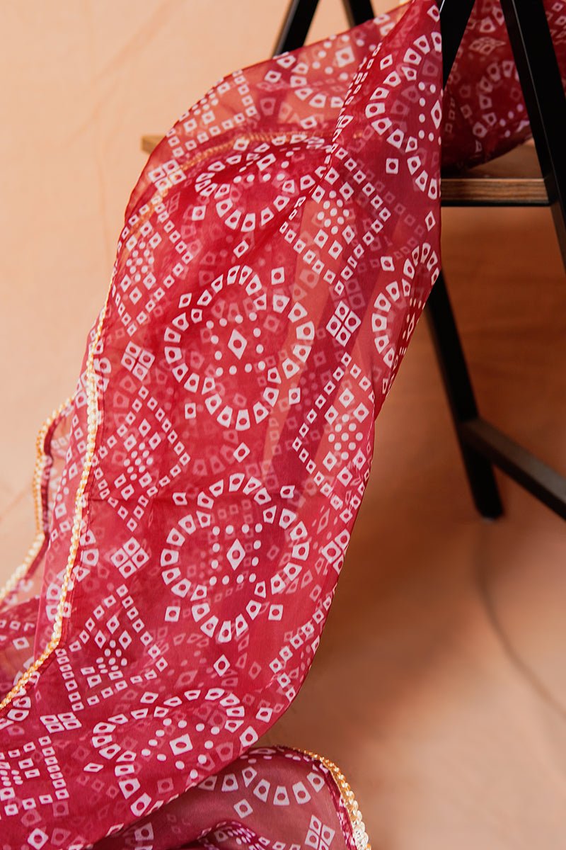 CHUNRI STYLE DUPATTA WITH GOLDEN TILLA LACE