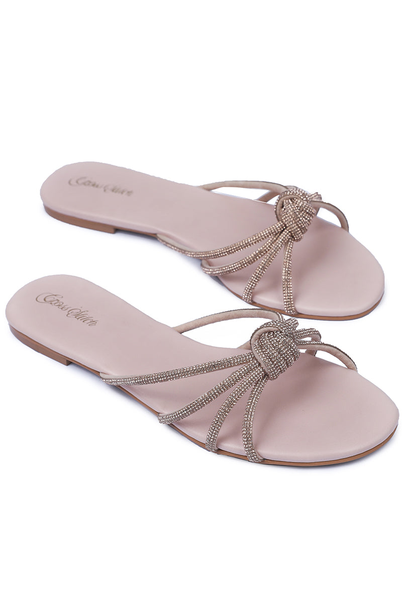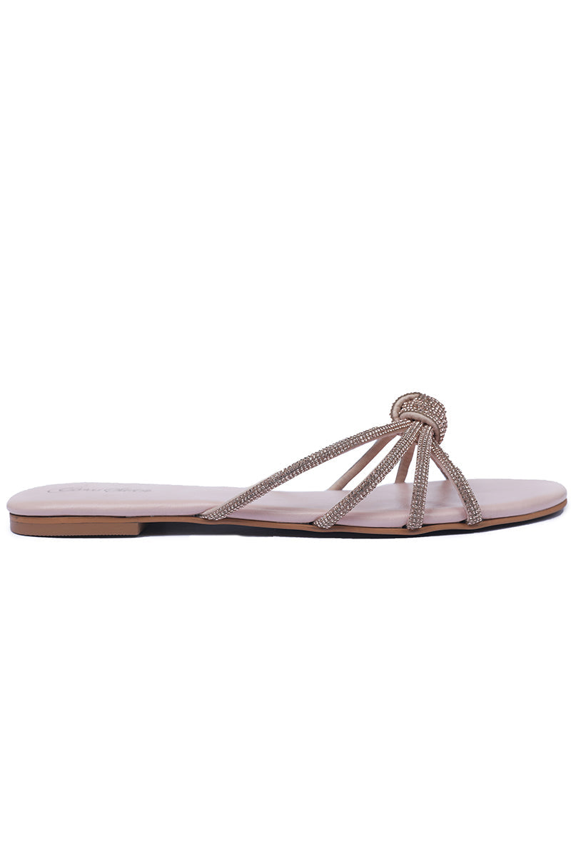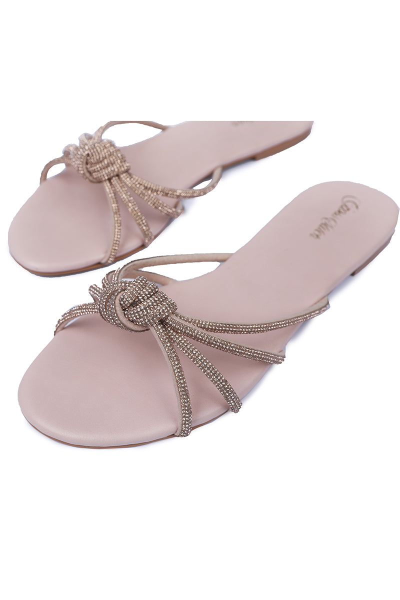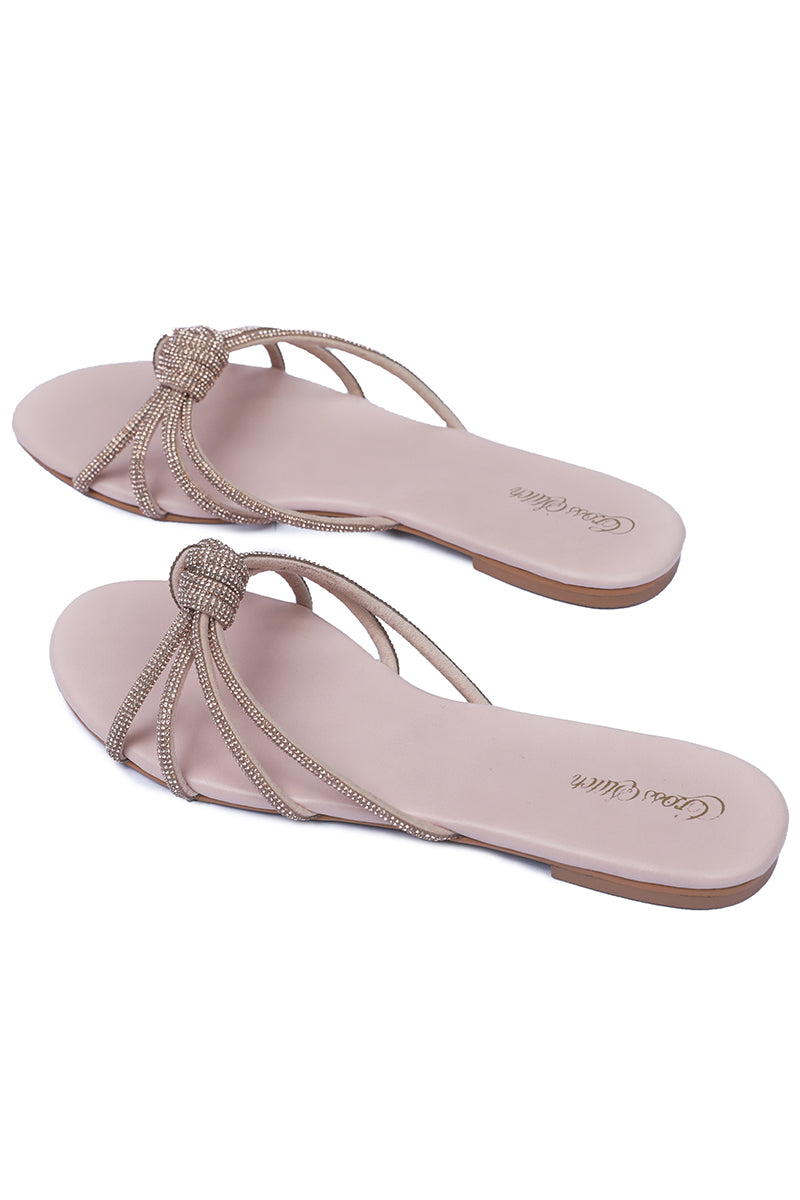Sequin strapped flats in a pastel tone with a cute knot on top to amp up your look.