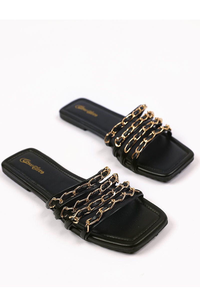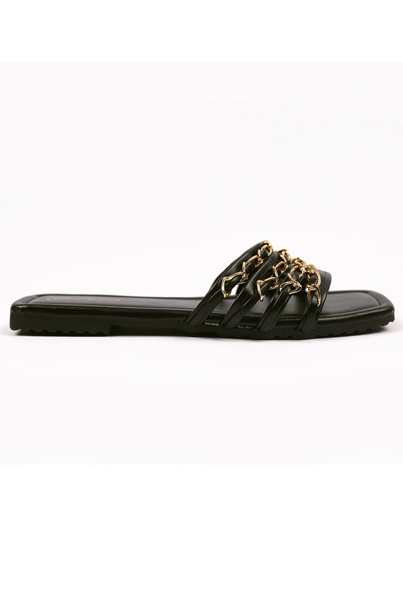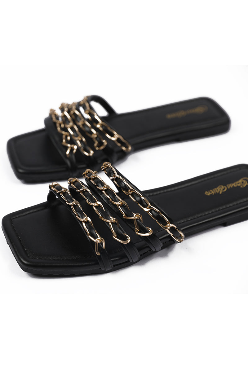 - Black chain straps on a glossy black base, perfect to pair with your eastern and western outfits