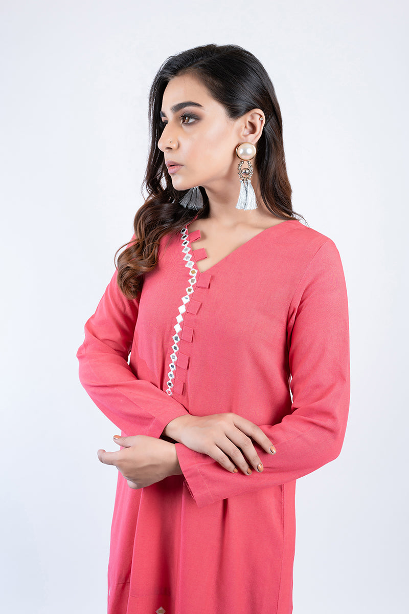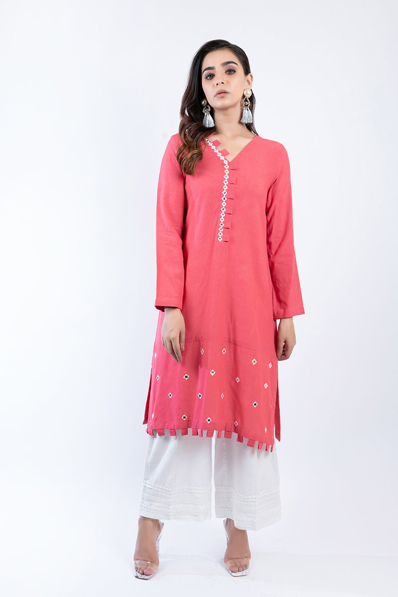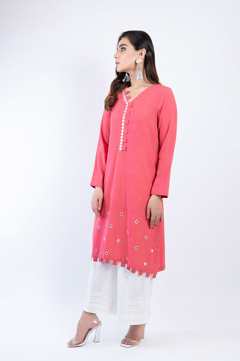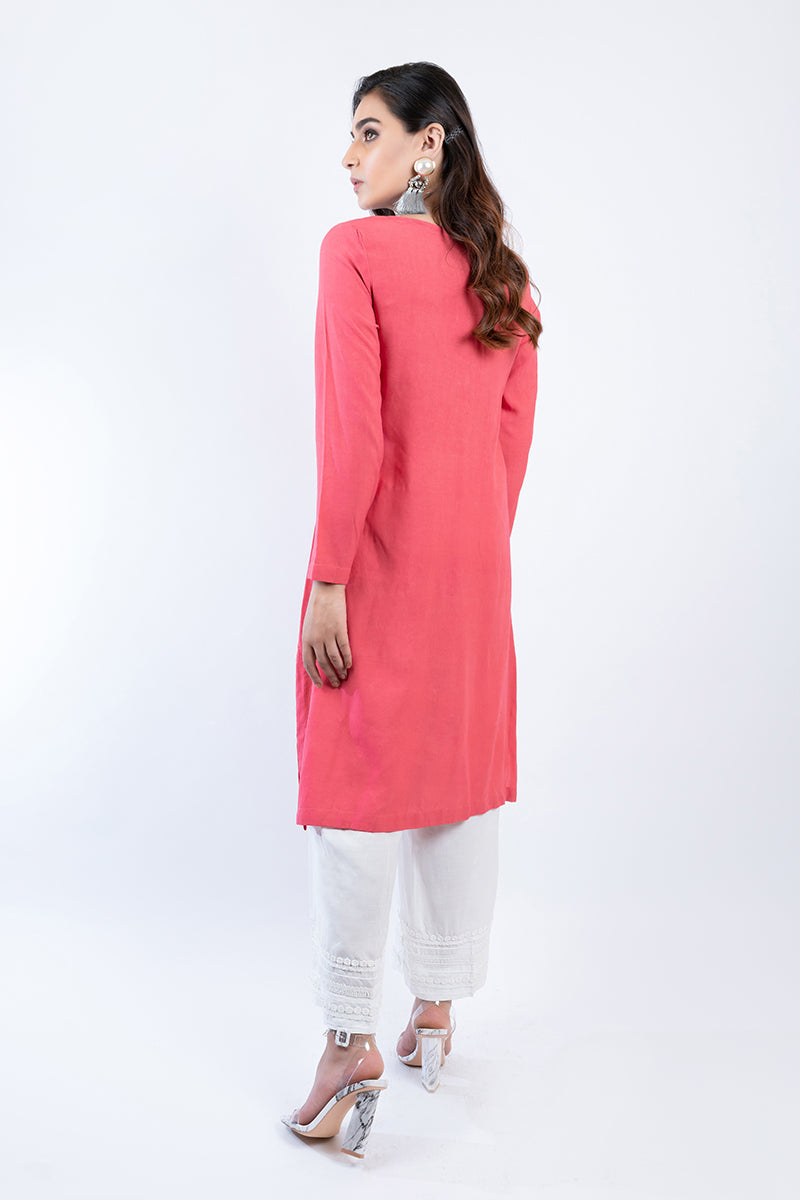 THIS LINEN-DYED KURTA ADDS A VIBRANT TOUCH TO YOUR EVERYDAY ROUTINE. PAIR IT UP WITH STRAIGHT TROUSERS AND A SHAWL TO GO IN WINTER.