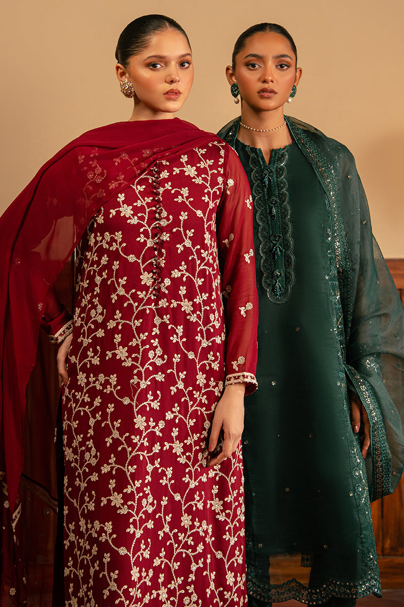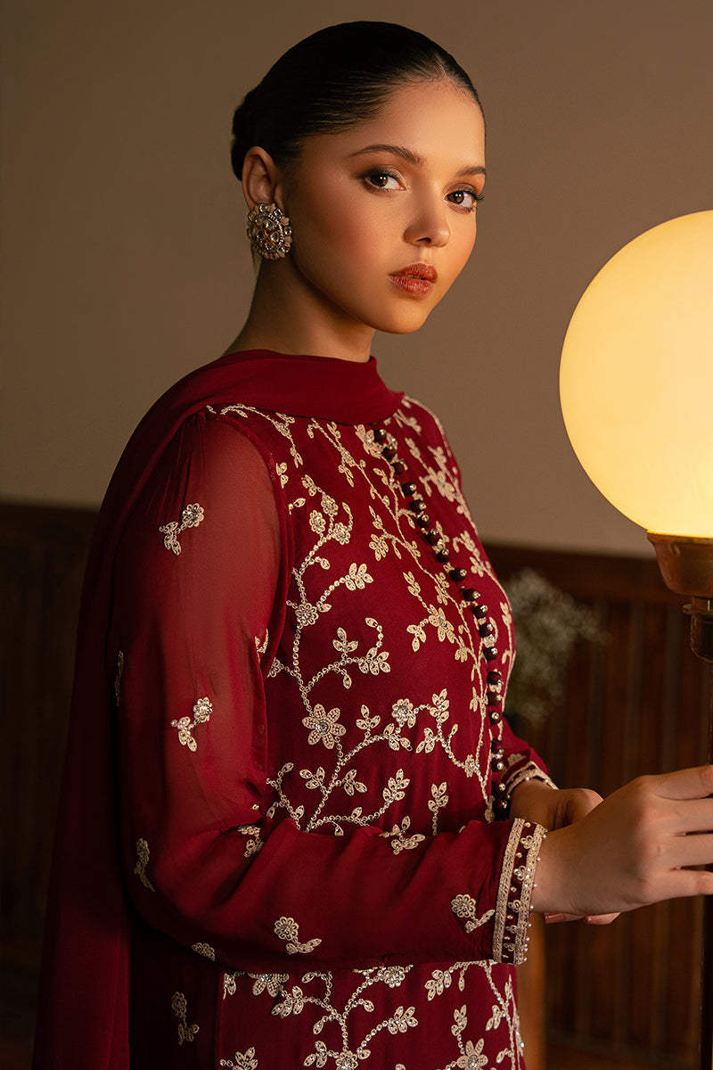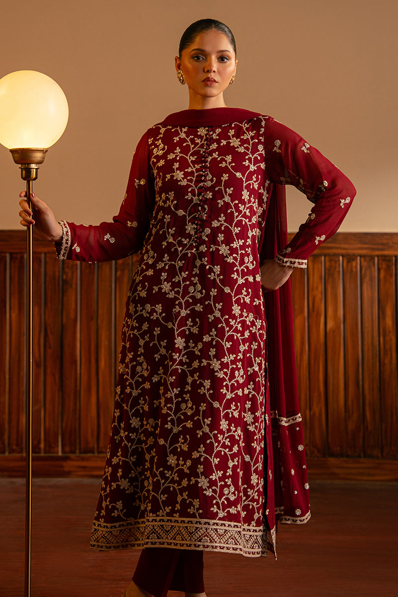 - This CORDOVAN DREAM 2-Pc set includes a straight chiffon shirt with beautiful front and back embroidery. The round neck is adorned with pearls and embellished loop buttons, while the sleeves feature delicate pearl embroidery. The included chiffon dupatta is also embroidered for added elegance. Elevate your wardrobe with this exquisite set.