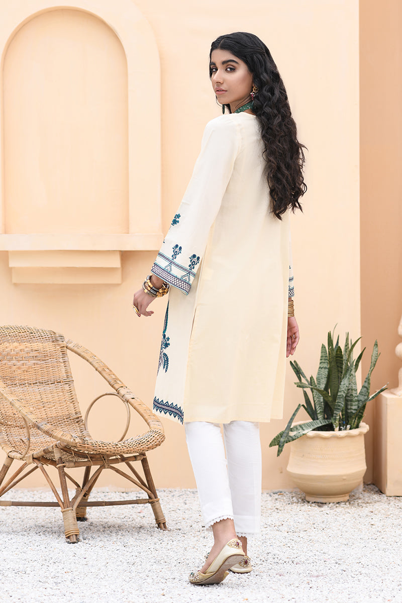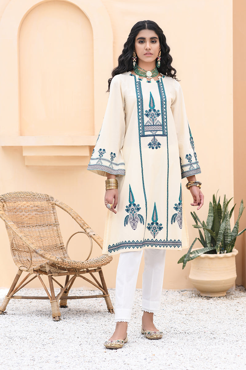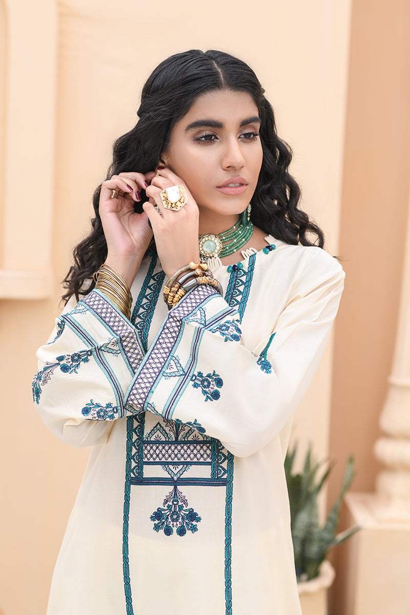 The Regal Off White Color with the Touch of Impeccable Embroidered Details of Blue and Teal Threadwork make this Exquisite Kurta Stand Out. The Kurta paired with White bottom is a Perfect for a Day Out