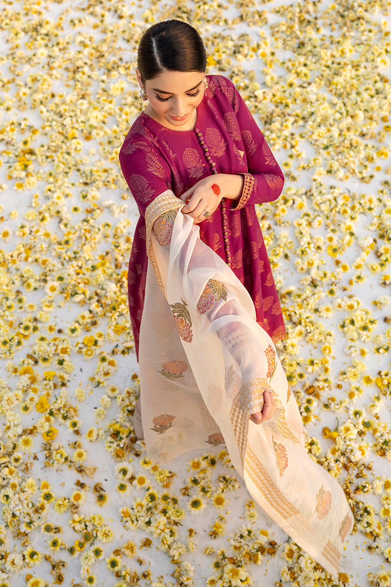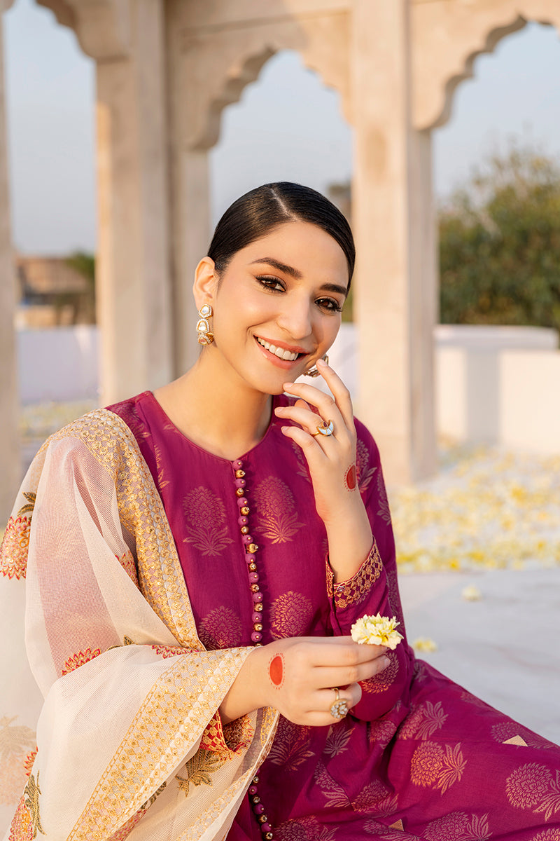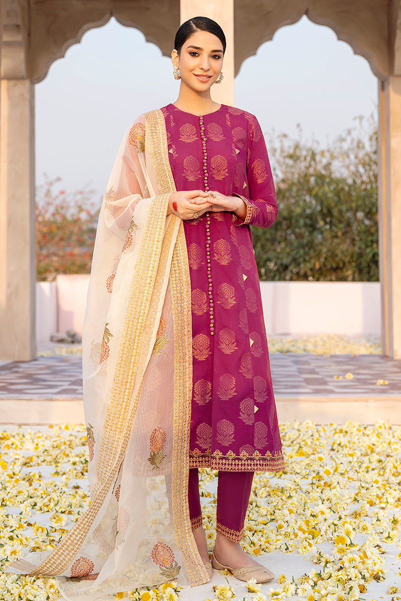 CRIMSON BLOOM-3PC COTTON JACQUARD SUIT