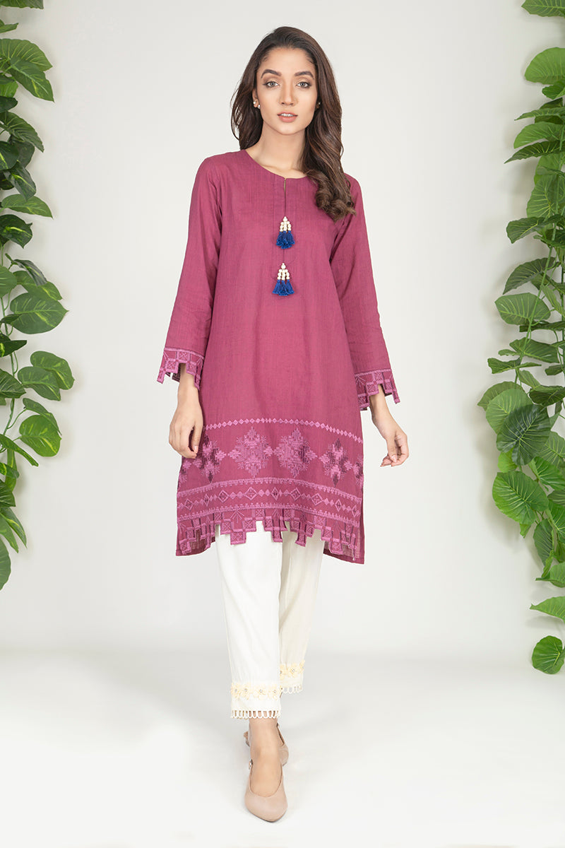 COTTON SLUB EMBELLISHED/EMBROIDERED READY TO WEAR SHIRT