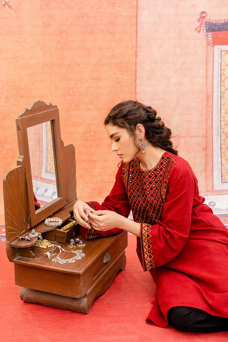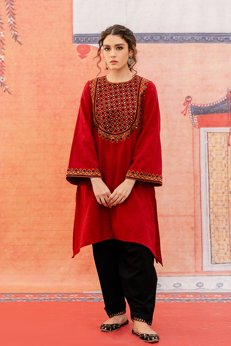 A fine detailed ready to wear intricate embroidery top that plays along with your day-to-day adventures, going perfect with a black shalwar or trousers.