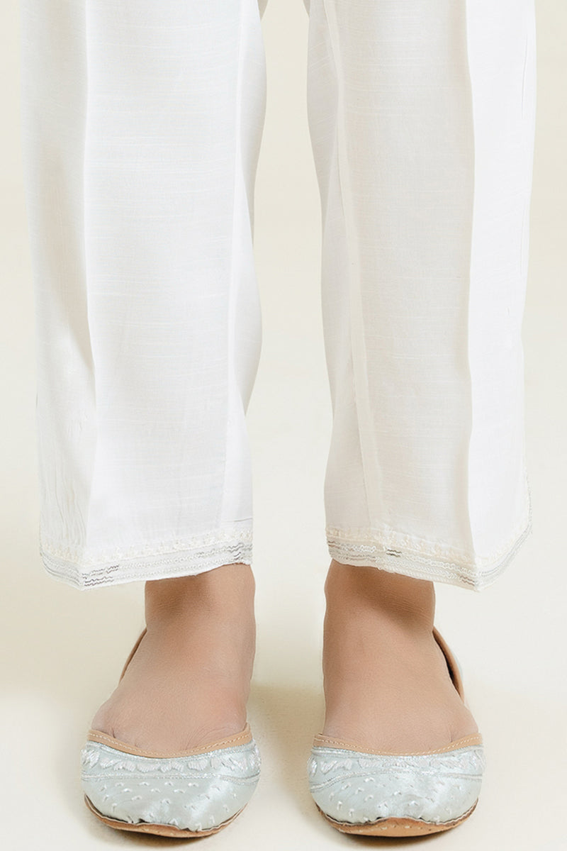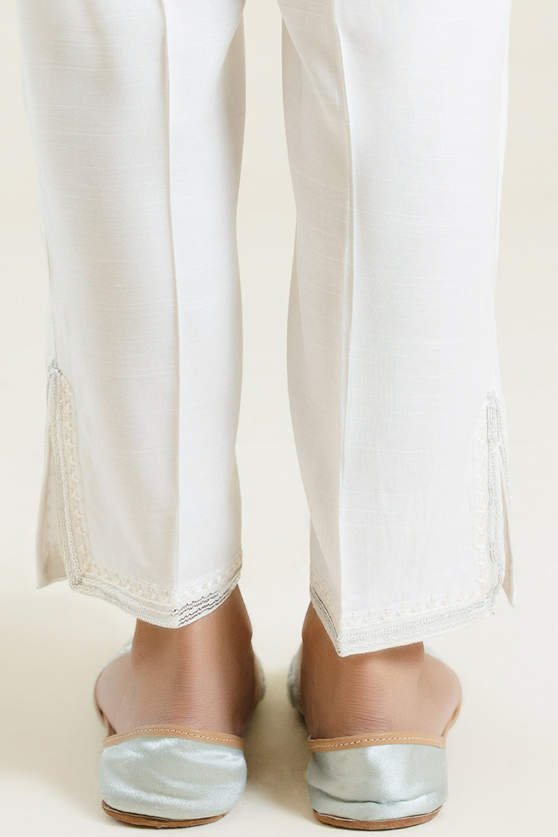 RAW SILK STRAIGHT FITTED EMBROIDERED PANTS