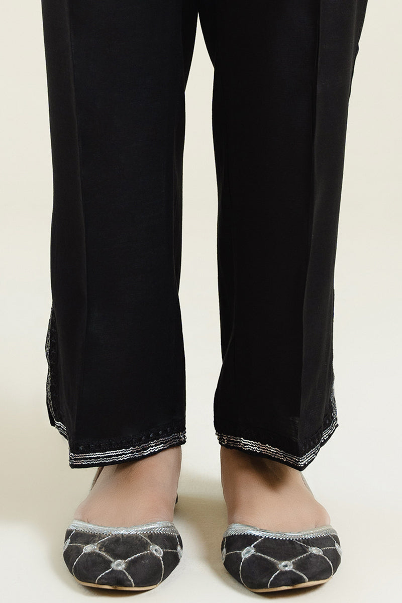 RAW SILK STRAIGHT FITTED EMBROIDERED PANTS