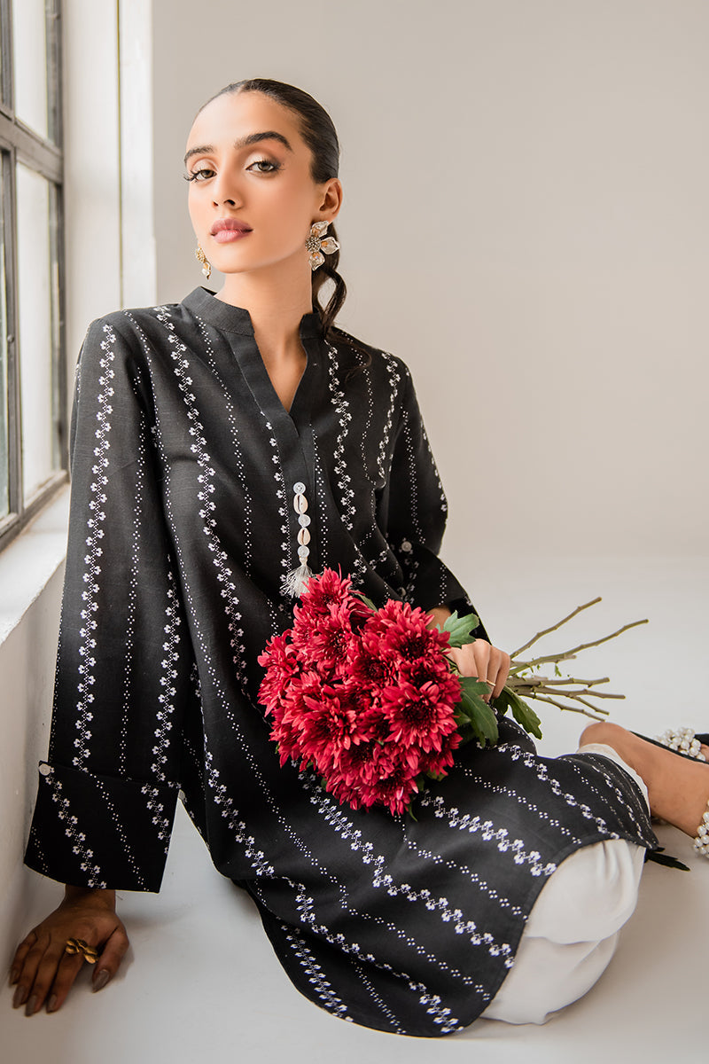 DARK OPAL PRINTED KHADDAR SHIRT