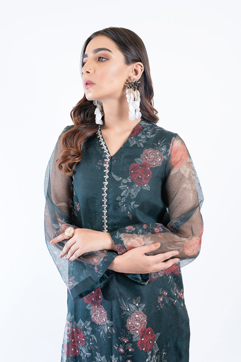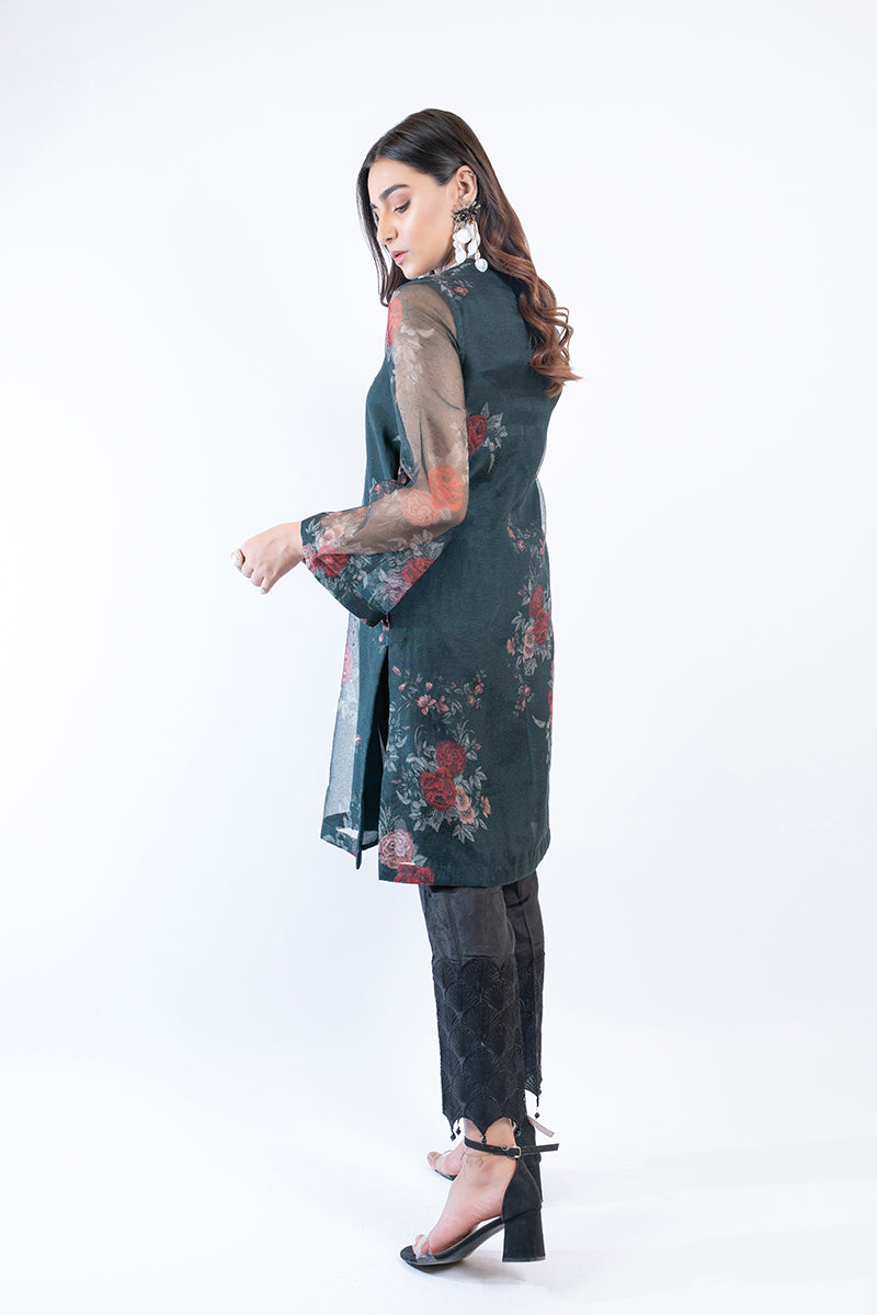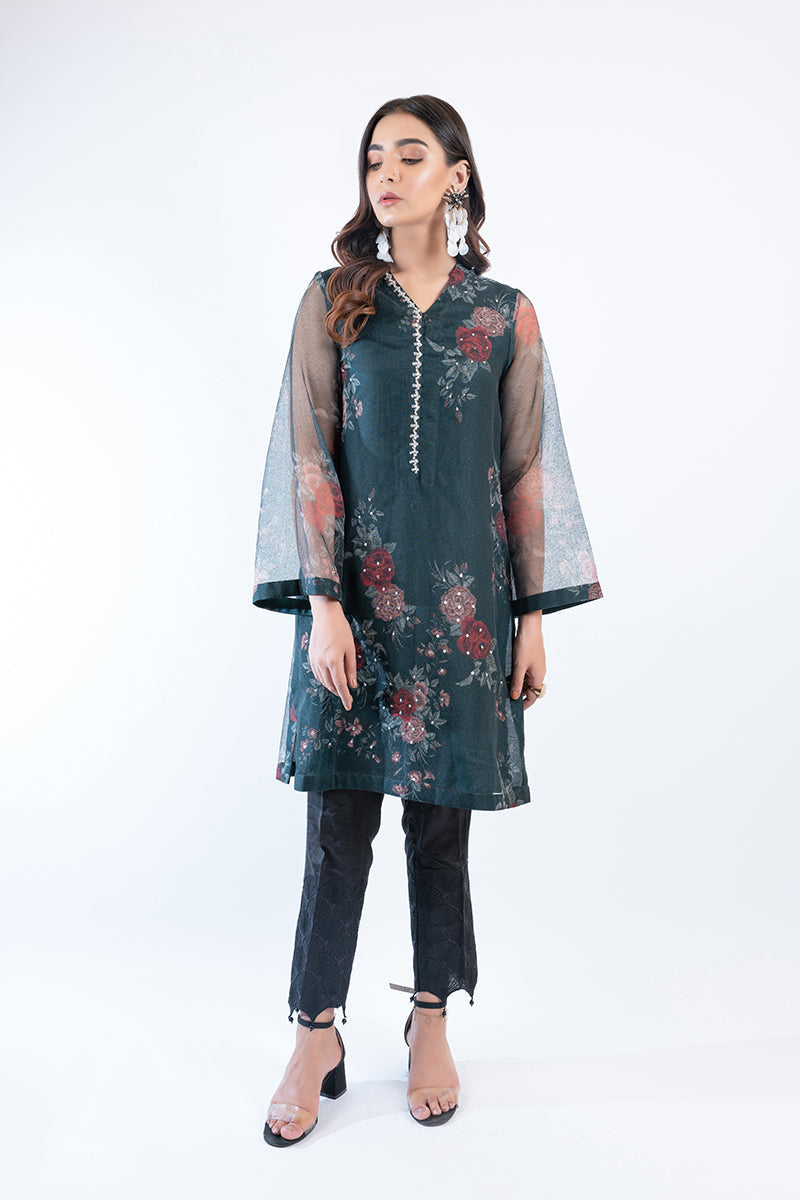 Deep flo goes beyond making a statement, perfected to be an evening attire with a dark bottom and stilettos to go. Neckline work resonates with shell jewelry.