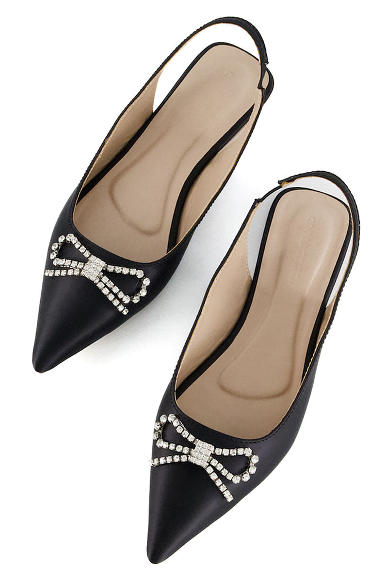 DELLA-1 is a sophisticated sling back shoe with a beautiful bow trim detail. Made from high quality satin, these shoes are designed for comfort with padded insocks. The durable sheet outsole adds practicality to this elegant style.