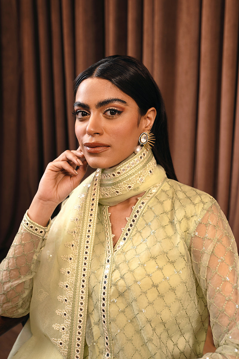 - DIVAN IS A SPELLBINDING VISION OF ABSOLUTE BEAUTY BRINGING YOU A DECADENT CANVAS IN LIME GREEN ORGANZA WITH EXQUISITE SEQUIN EMBROIDERY AND FAUX MIRROR EMBELLISHMENT ON THE NECKLINE. ACCOMPANIED BY A DUPATTA THAT IS AS STUNNING AS THE SHIRT FEATURING CLASSIC THREADWORK AND EMBELLISHMENTS, THIS ATTIRE IS TIMELESS EXCELLENCE.