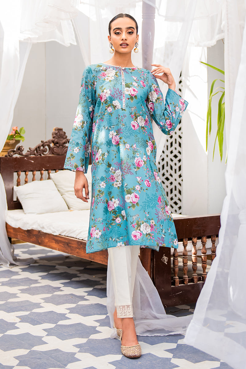 - Easy breezy digital printed kurta decorated with button and lace details to amp up your summer style. Pair the chic kurta with white pants and ponytail to opt a summer-ready attire.