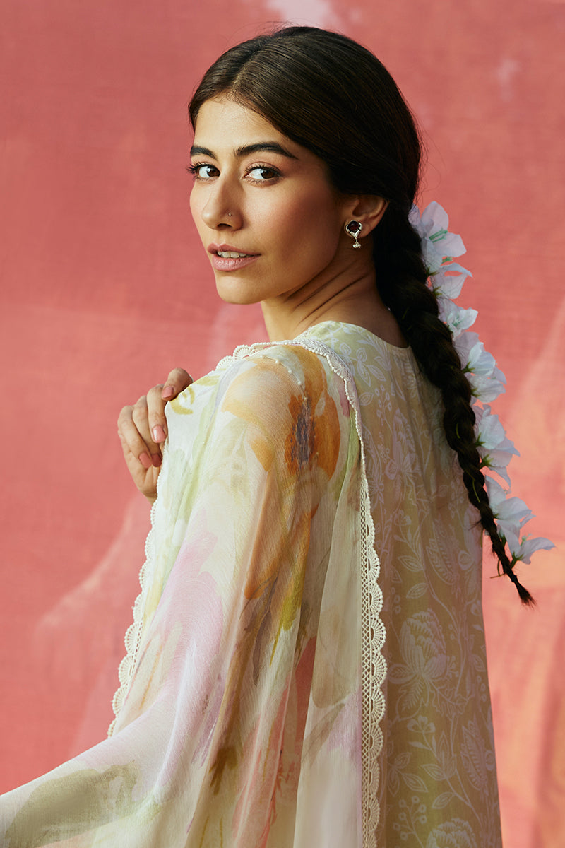 - This Dusty Bloom Stitch 3PC suit is perfect for any occasion. The lawn digital print of the shirt adds a touch of elegance and the embroidered details on the neckline and patti give a sophisticated look. The cambric trouser is comfortable yet stylish, while the chiffon dupatta adds a final touch of grace.