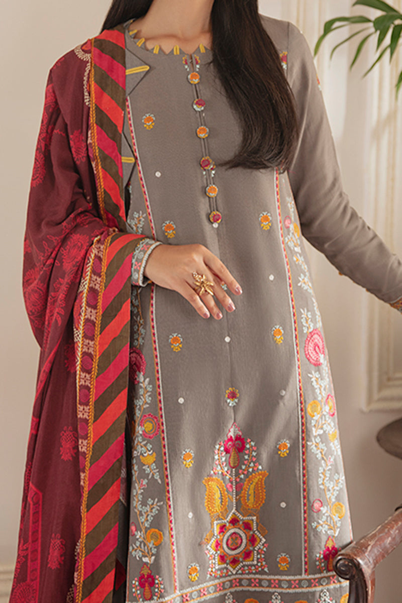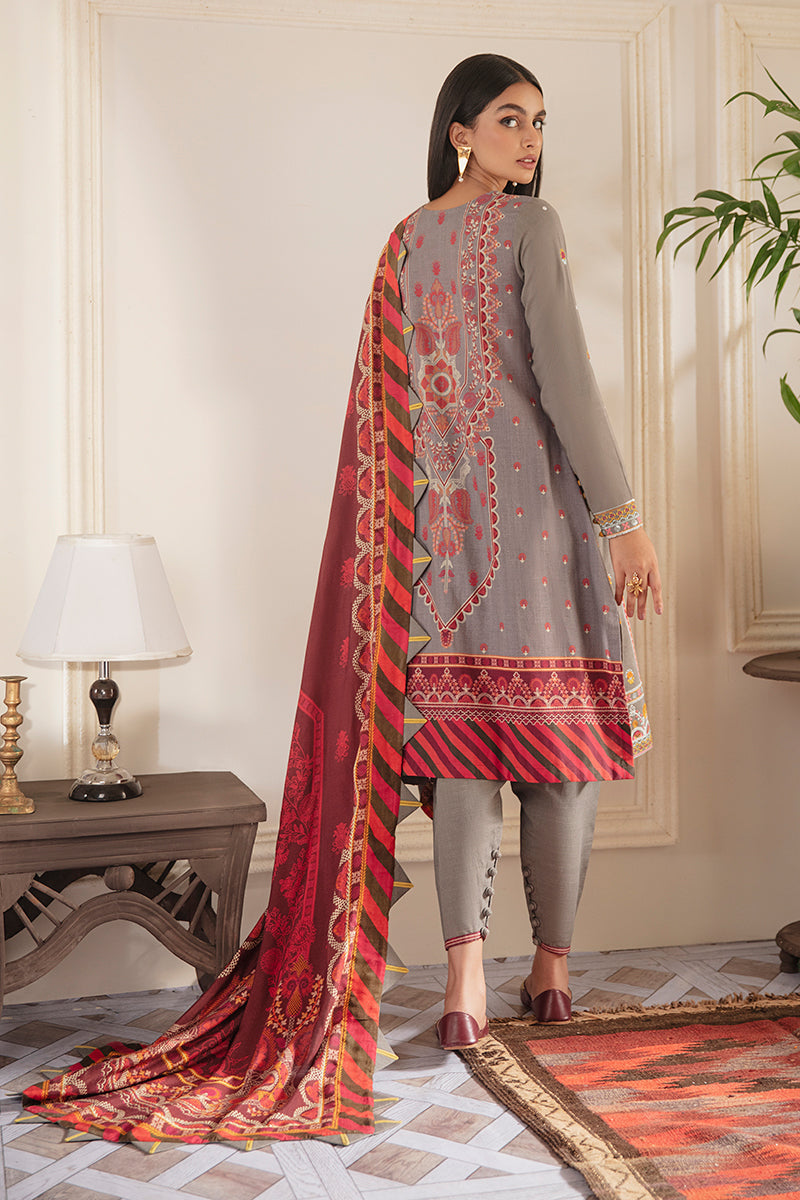 DYED EMBROIDERED KHADDAR FRONT AND SLEEVES, DIGITAL PRINTED BACK