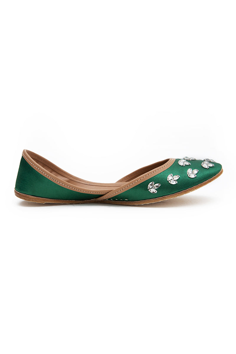 THIS ELEGANT GREEN KHUSSA IS LAYERED WITH AN AESTHETICALLY PLEASING DESIGN AND EMBELLISHED WITH CRYSTAL STONES. THIS SEASON, WEAR THIS KHUSSA WITH A VARIETY OF OUTFITS.