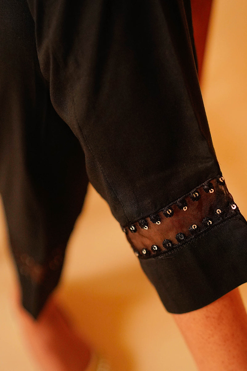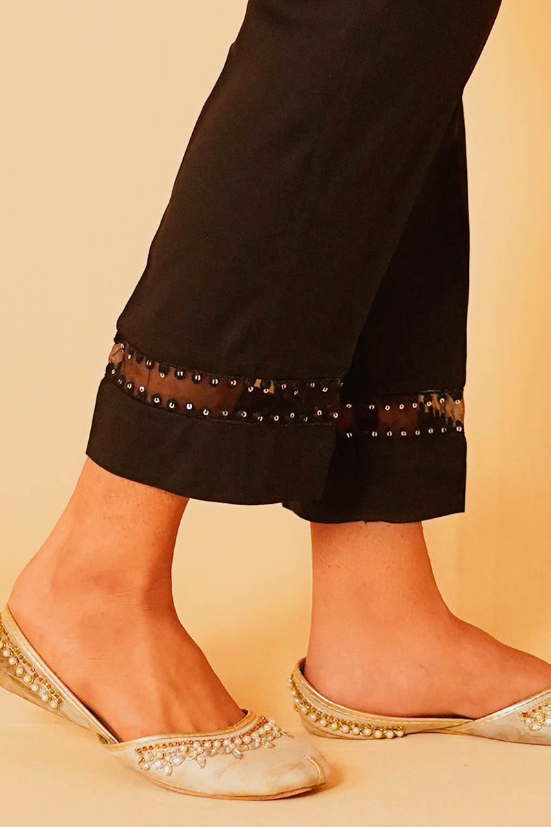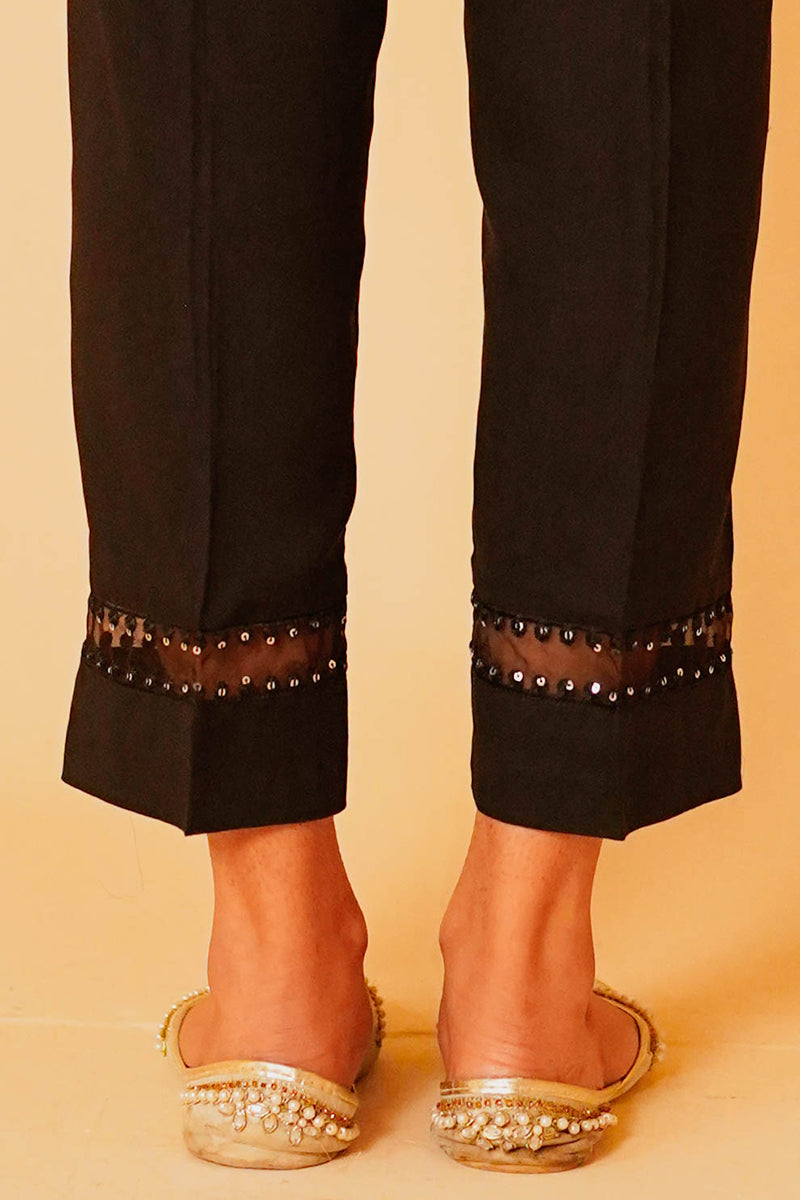 STRAIGHT FITTED LINEN EMBROIDERED PANTS