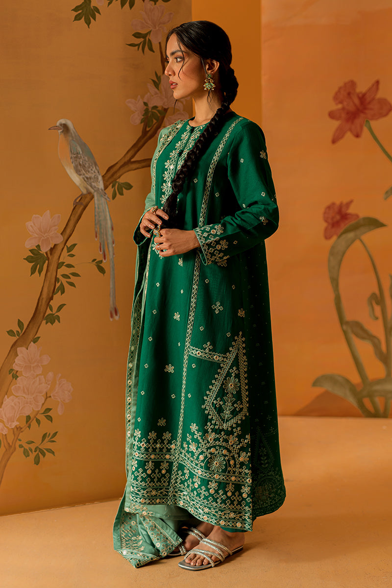 EMERALD SPRUCE-3PC EMBROIDERED KHADDAR SUIT