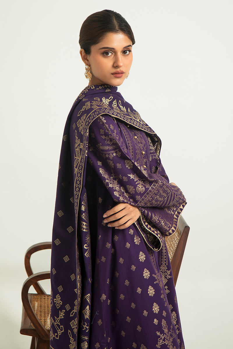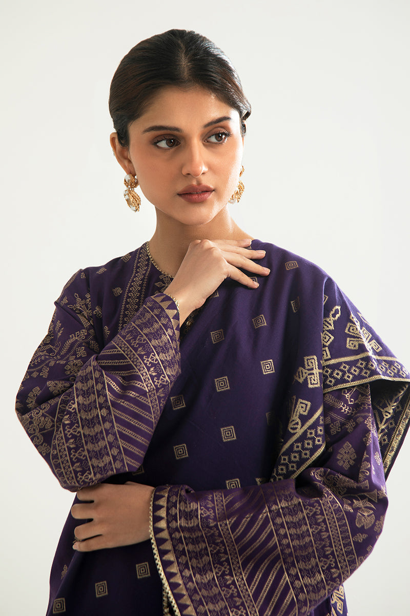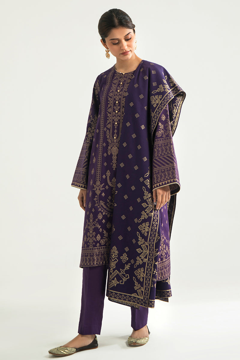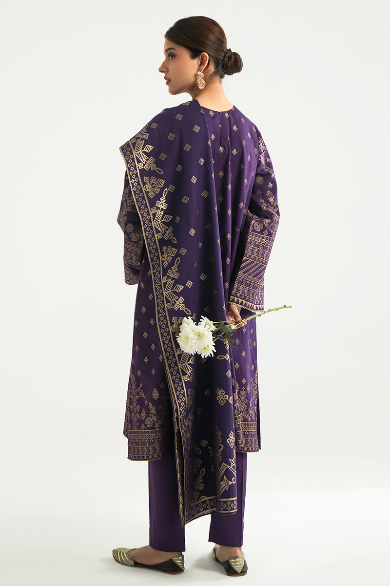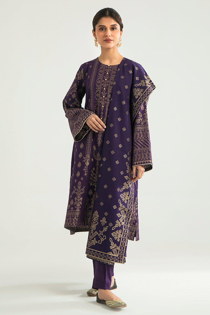 ETHNIC ERA-A-3PC COTTON JACQUARD SUIT