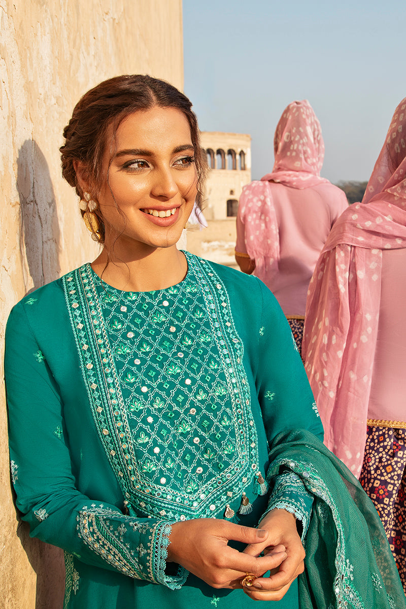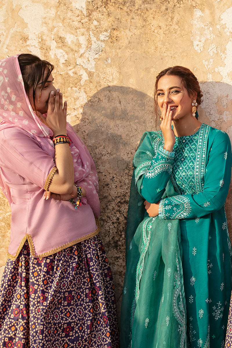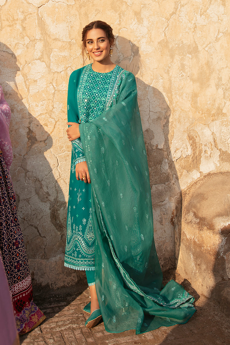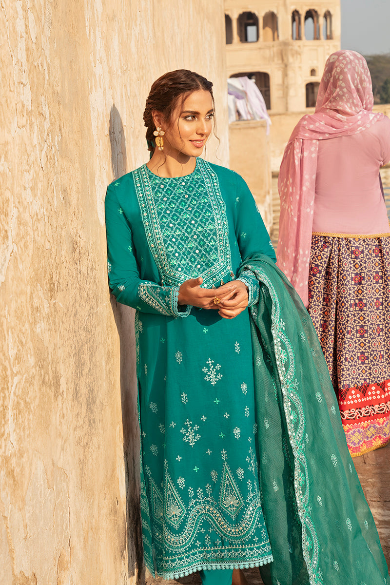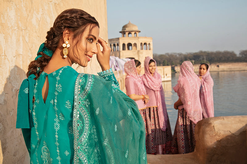 DYED EMBROIDERED LAWN FRONT & SLEEVES, PASTE PRINTED BACK,1 EMBROIDERED NECKLINE