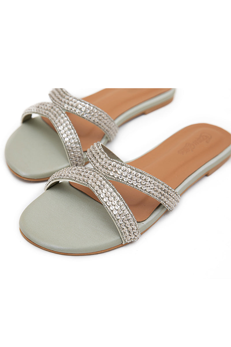 EXRA-1 Flats are expertly crafted by hand, featuring beautiful embellishment work. Made with high-quality PU material, these flats are both durable and stylish. The padded insocks provide ultimate comfort, while the sheet outsole offers stability and longevity. Perfect for any occasion, these flats are a must-have for any wardrobe.