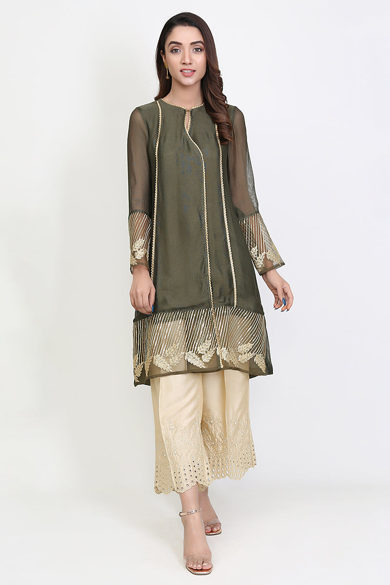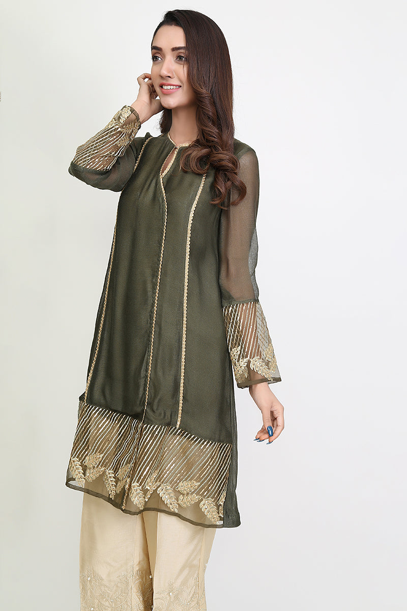 Fauna Styles gives the reminder of times passed when green and gold were crowned. Match this precious top with an open trouser and block heel to portray a statement.