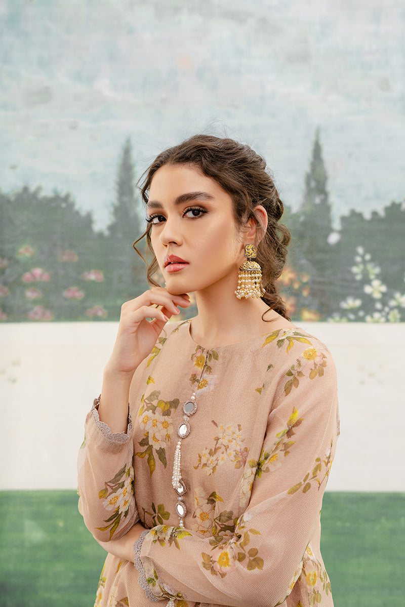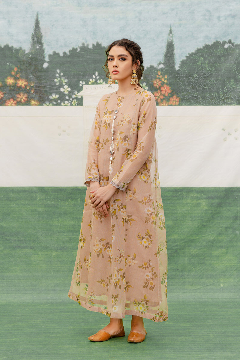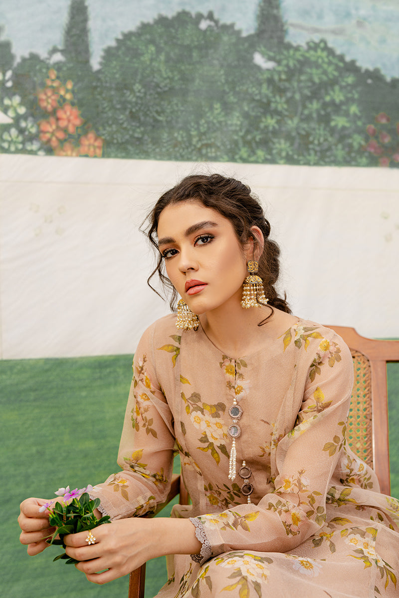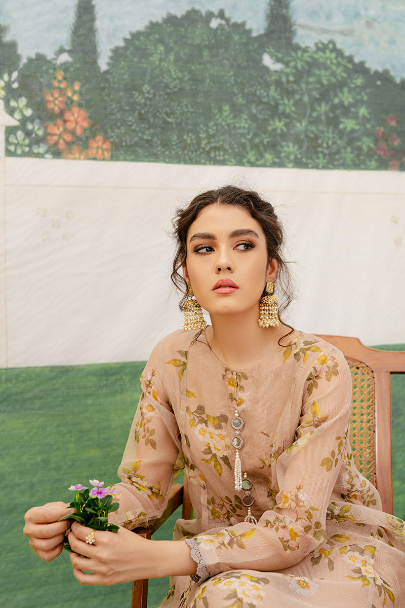 A reminiscence of the past, portrayed in flowers and a pastel touch. Organza magic with a focus on detailed neckline, goes perfect with a closed cut trouser and a braided hairdo.