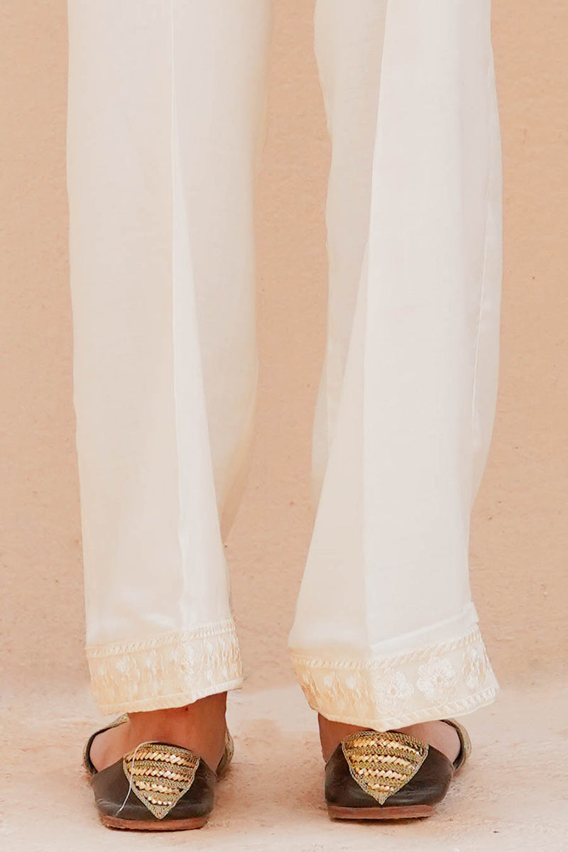 STRAIGHT LINEN SEQUIN EMBROIDERED PANTS