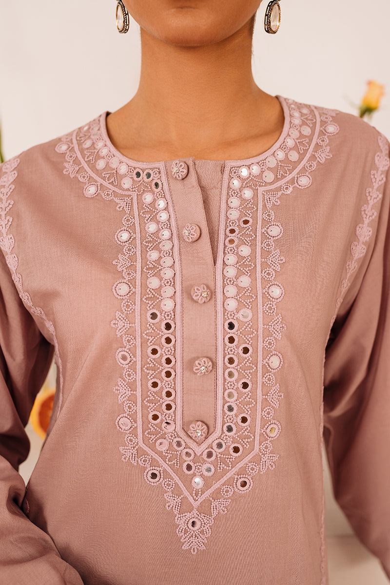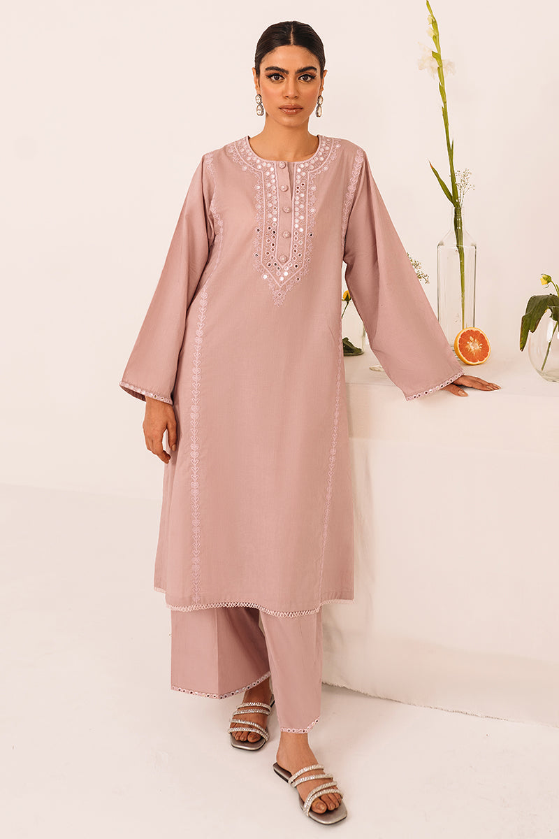 - Modest and minimal perfectly sum up the elegant floral oasis featuring a salmon pink kurta and culottes. embellished with resplendent faux mirror details on the neckline, this aesthetic two-piece makes every moment worthwhile.