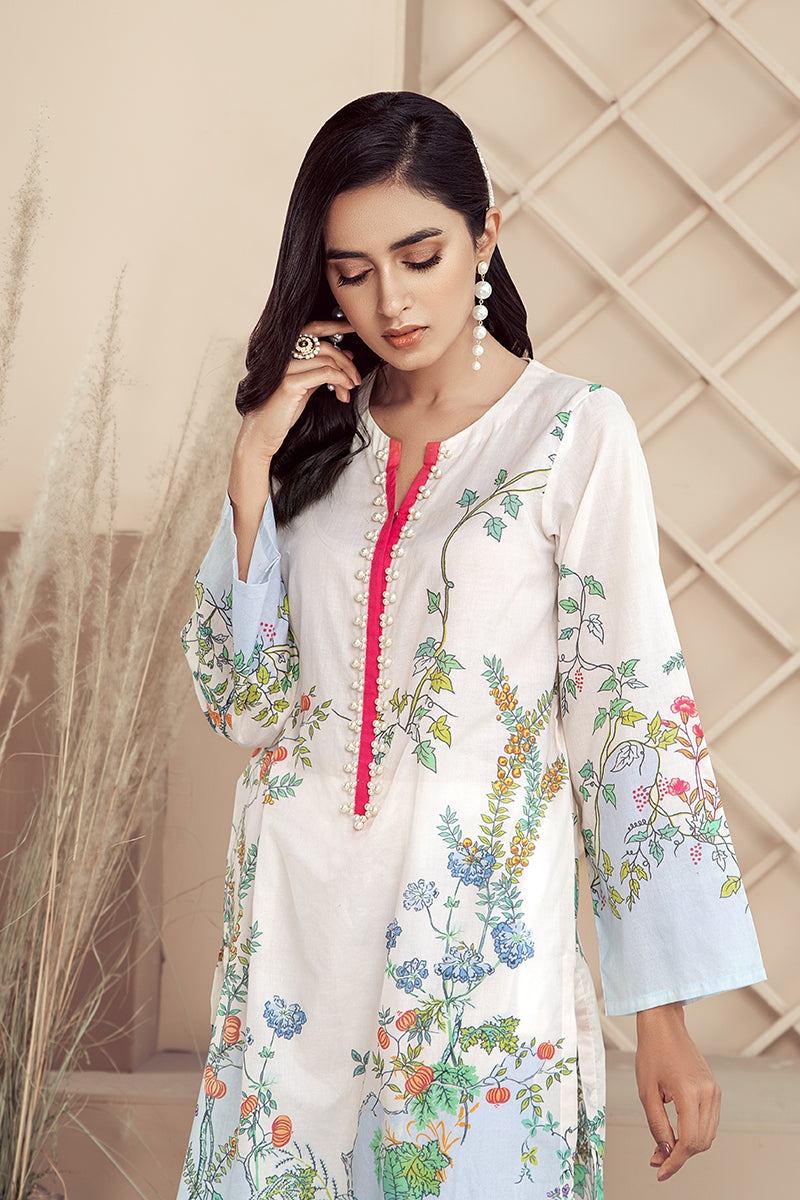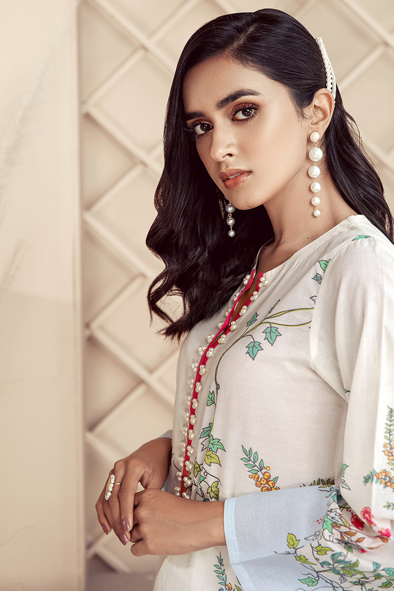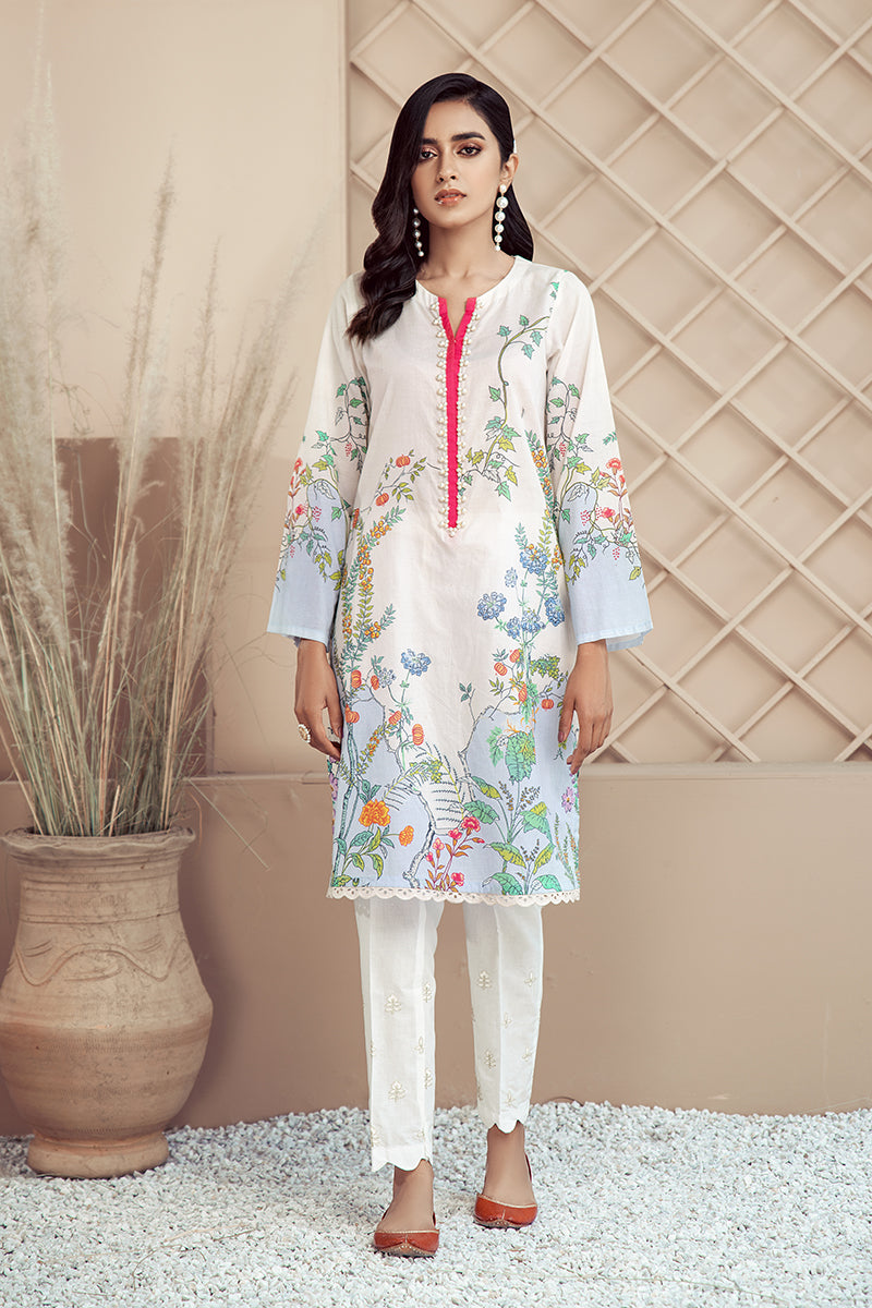 Meddling with autumn colors, this pert piece has a subtle glow to its floral design. A daily wear khaddar kurta that enhances your appearance when worn with a white straight pants