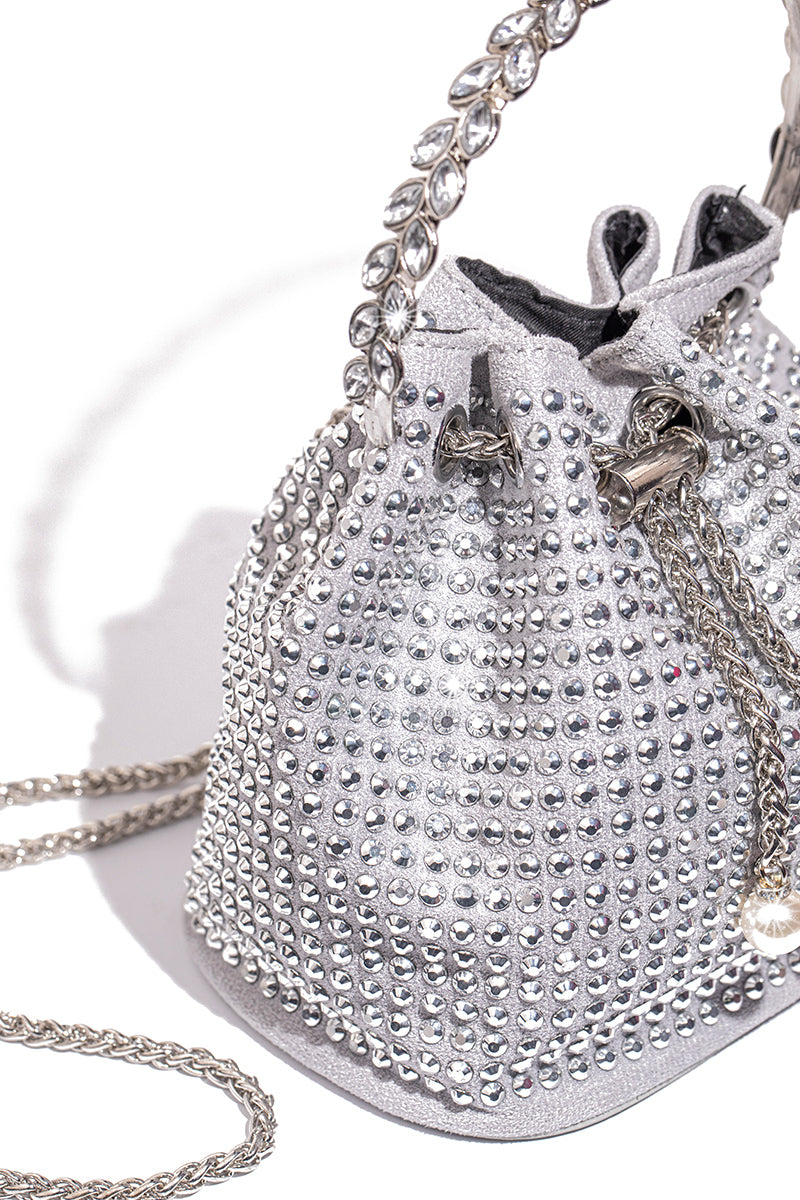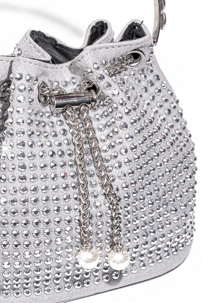 FLORENCE is a stylish grey hand bag crafted from finely embellished material. It has an elegant long chain for carrying it comfortably over your shoulder. Carry it to events and occasions for a look of sophistication.