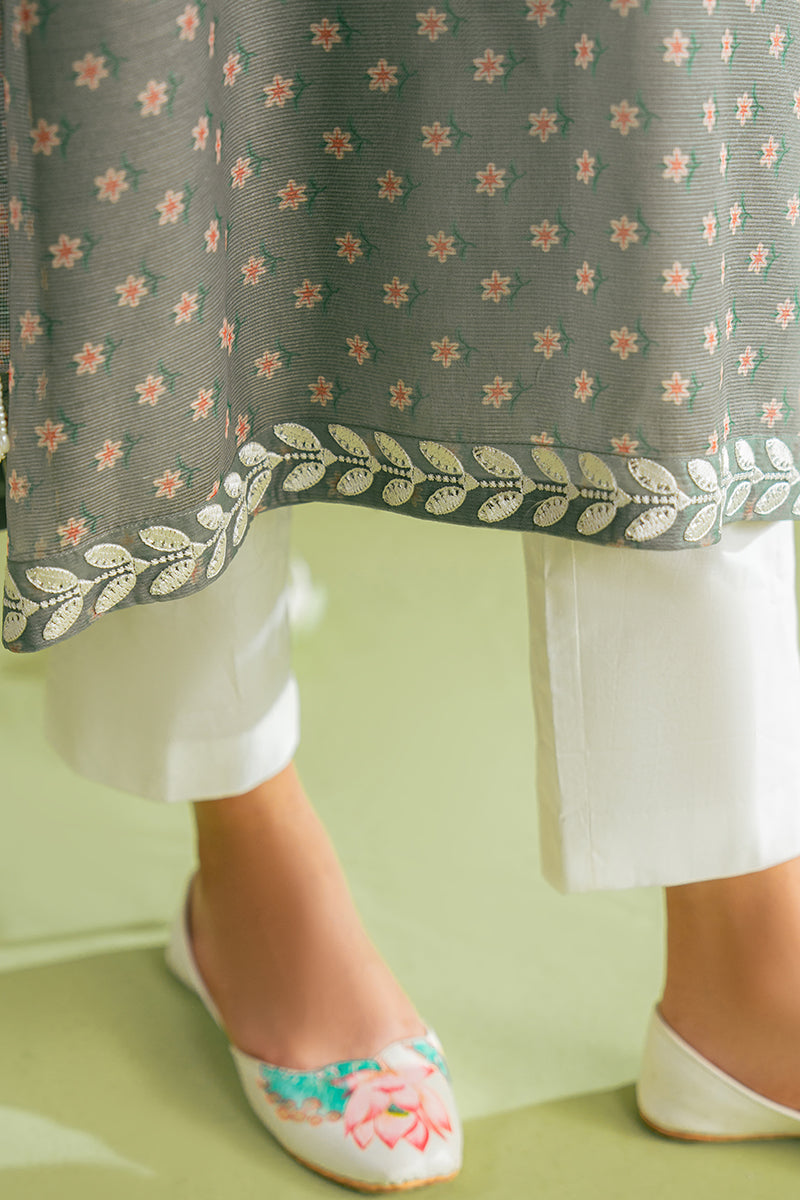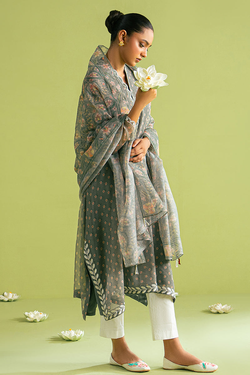 - The FOREST FLORA 2 PC set includes a stunning A-line shirt and printed Rajjo net dupatta. The front of the shirt is adorned with exquisite embroidery and a scalloped neckline, while the dupatta features a beautiful tassel detail. Perfect for any occasion, this set will add a touch of elegance to your wardrobe.