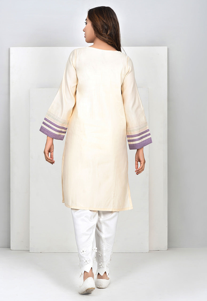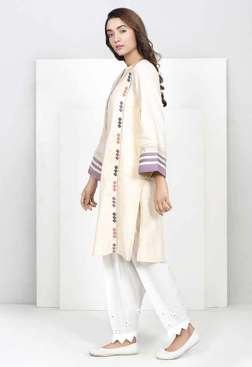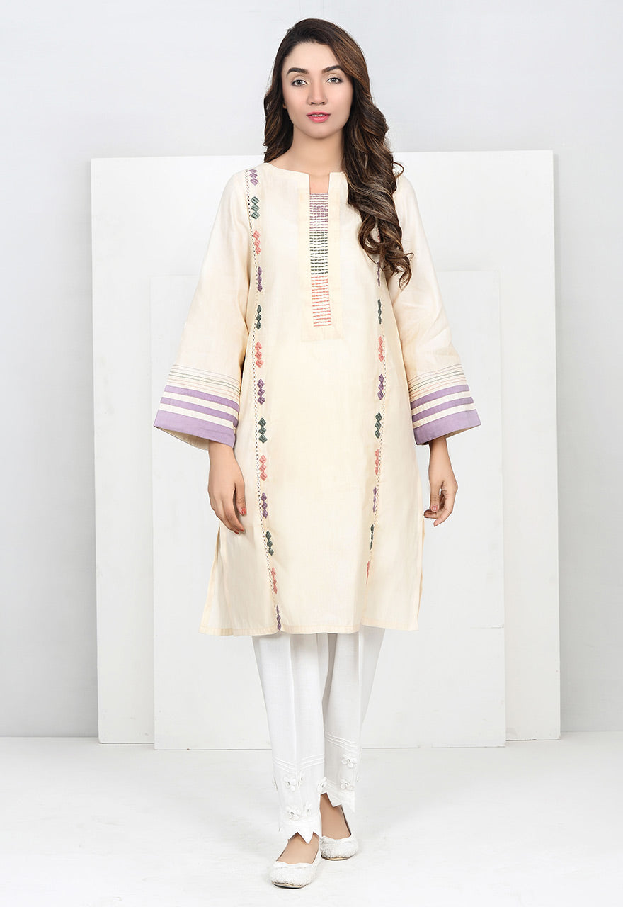 COTTON SATIN EMBROIDERED READY TO WEAR SHIRT.