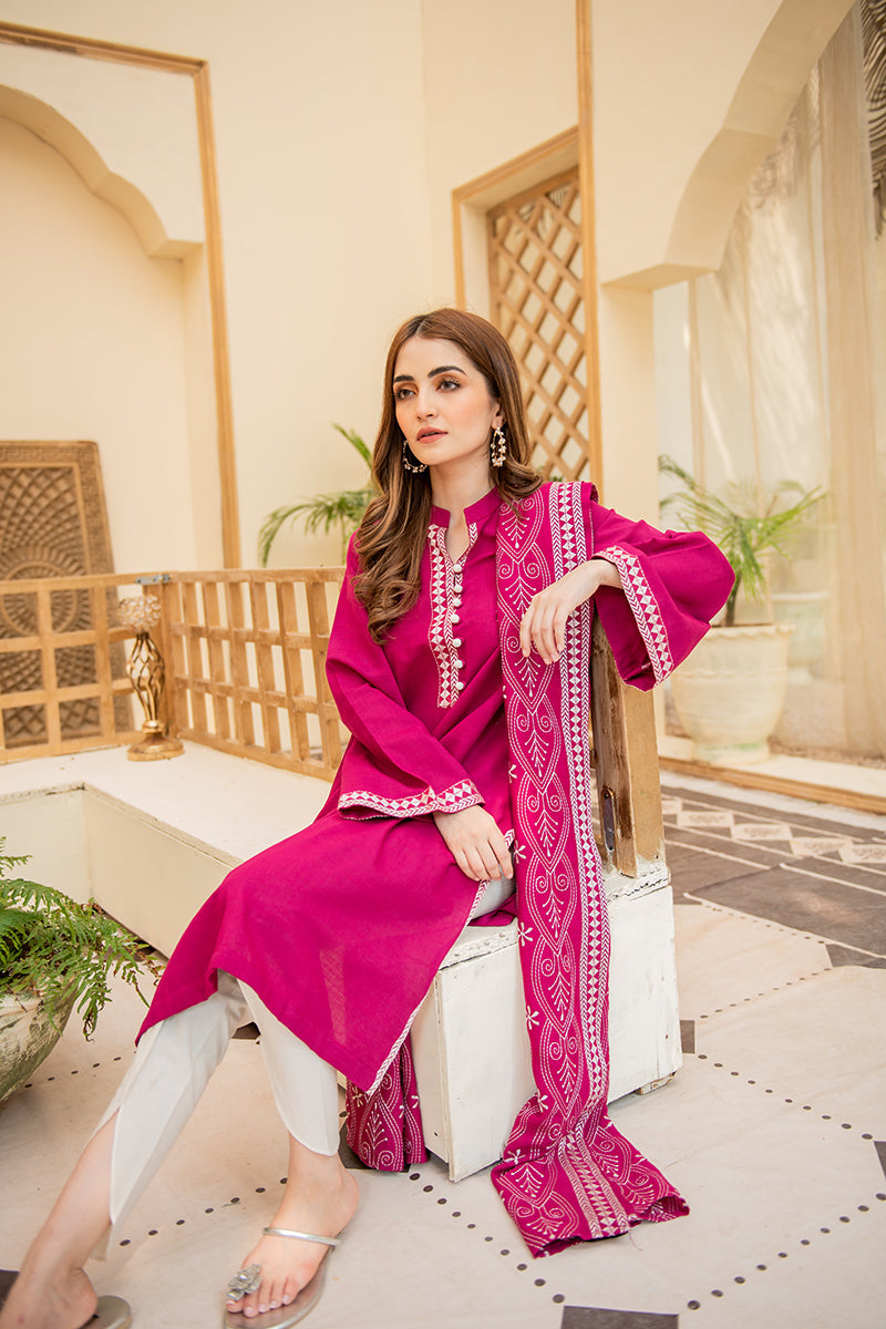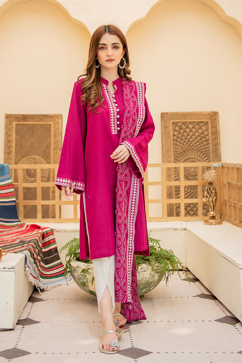 READY TO WEAR DYED KHADDAR SHIRT WITH DUPATTA