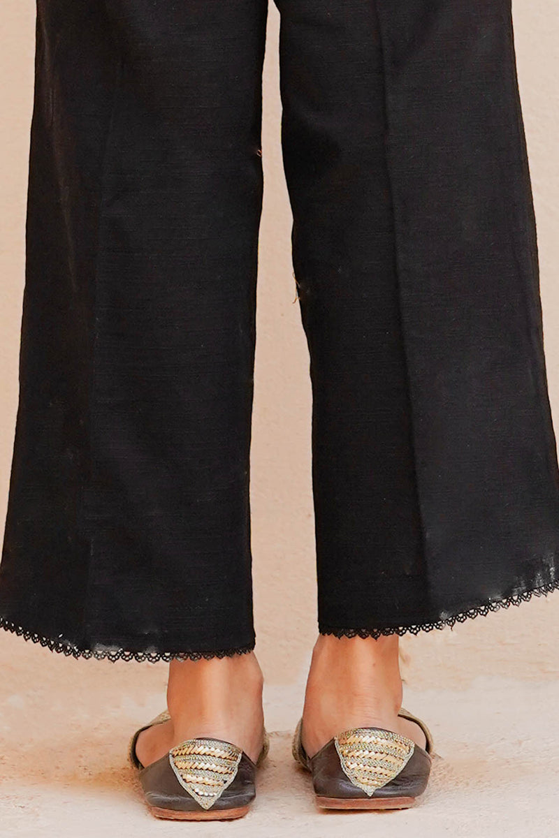 STRAIGHT KHADDAR PIN TUCKS AND LACE PANTS