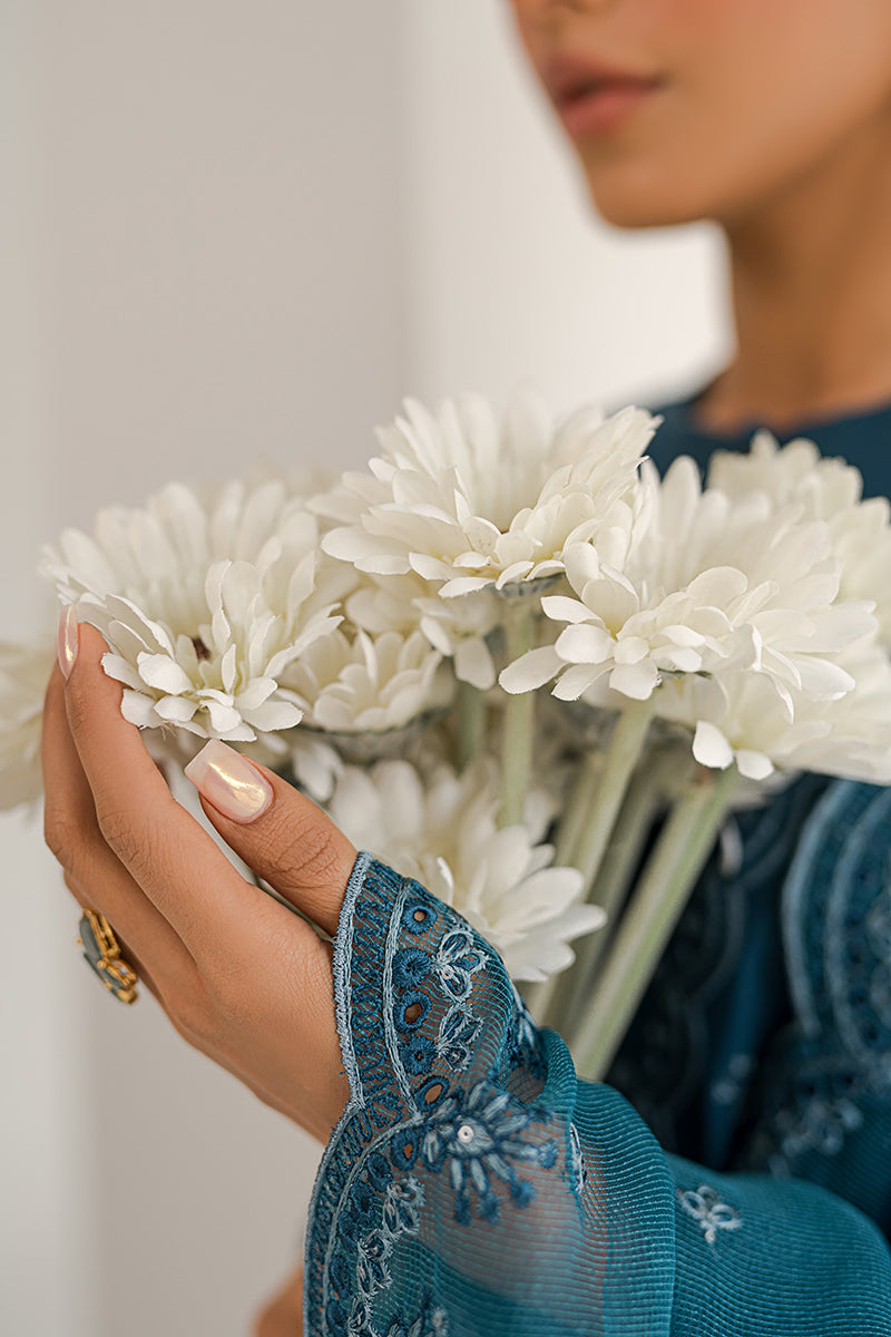 GLAZED CERULEAN-3PC EMBROIDERED LAWN SUIT