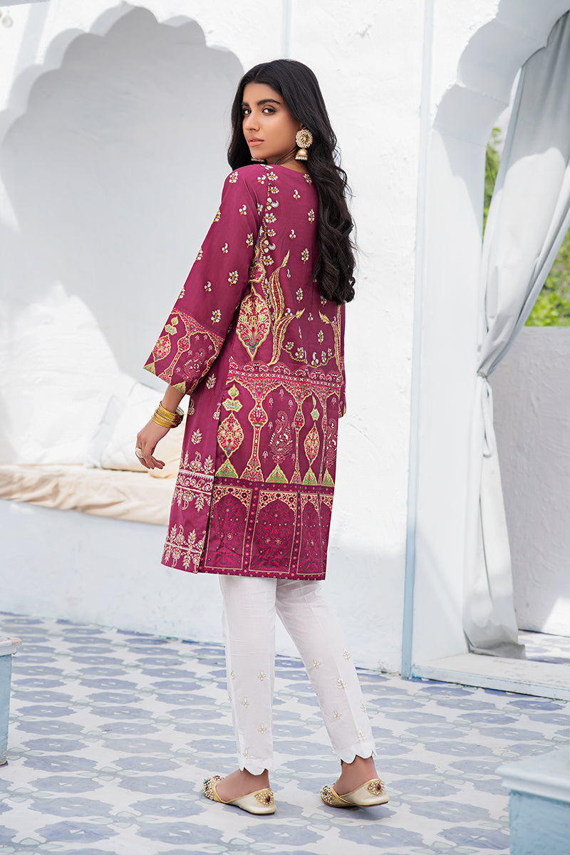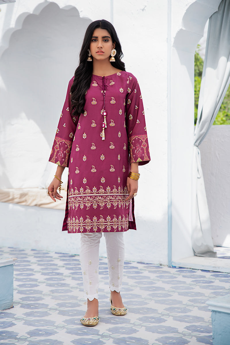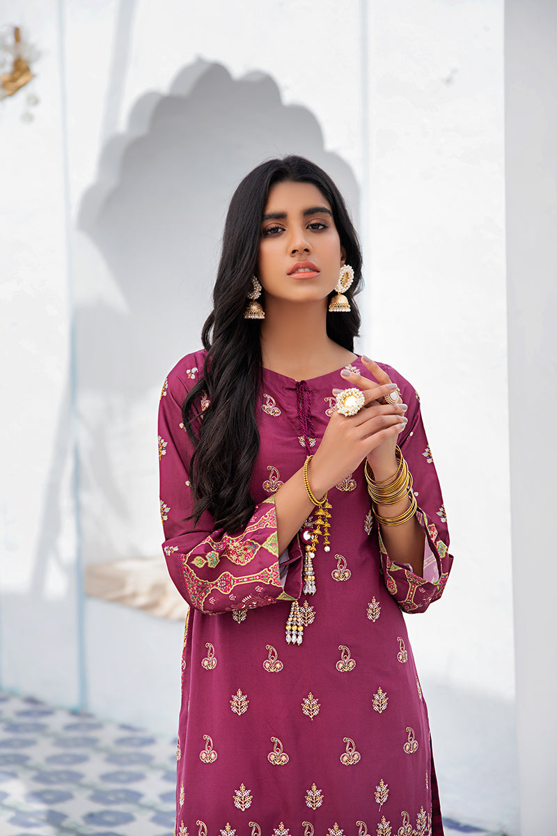 Digital Printed Front and Back, Boat Neck with Slit, Embellished Tassell on Neckline, Full Sleeves