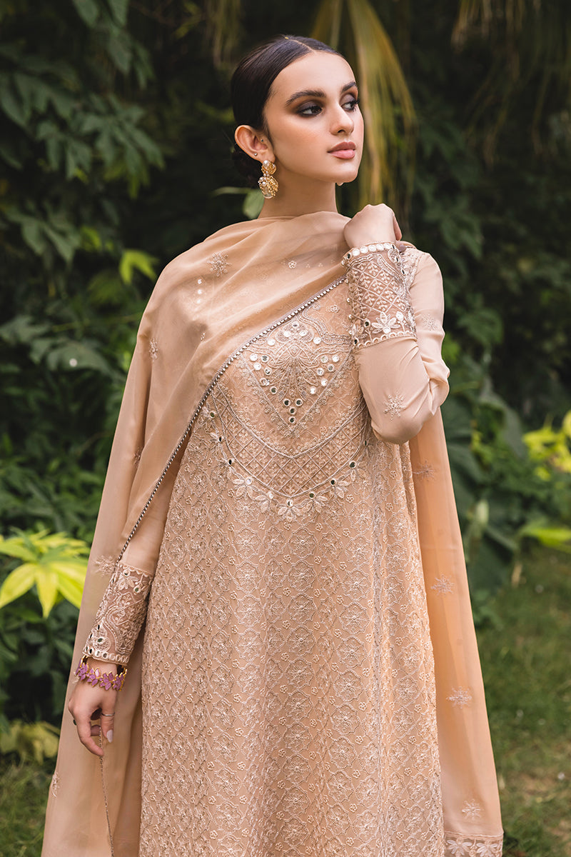 GLIMMER TAN-4PC EMBROIDERED CHIFFON SUIT