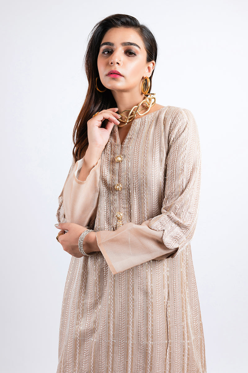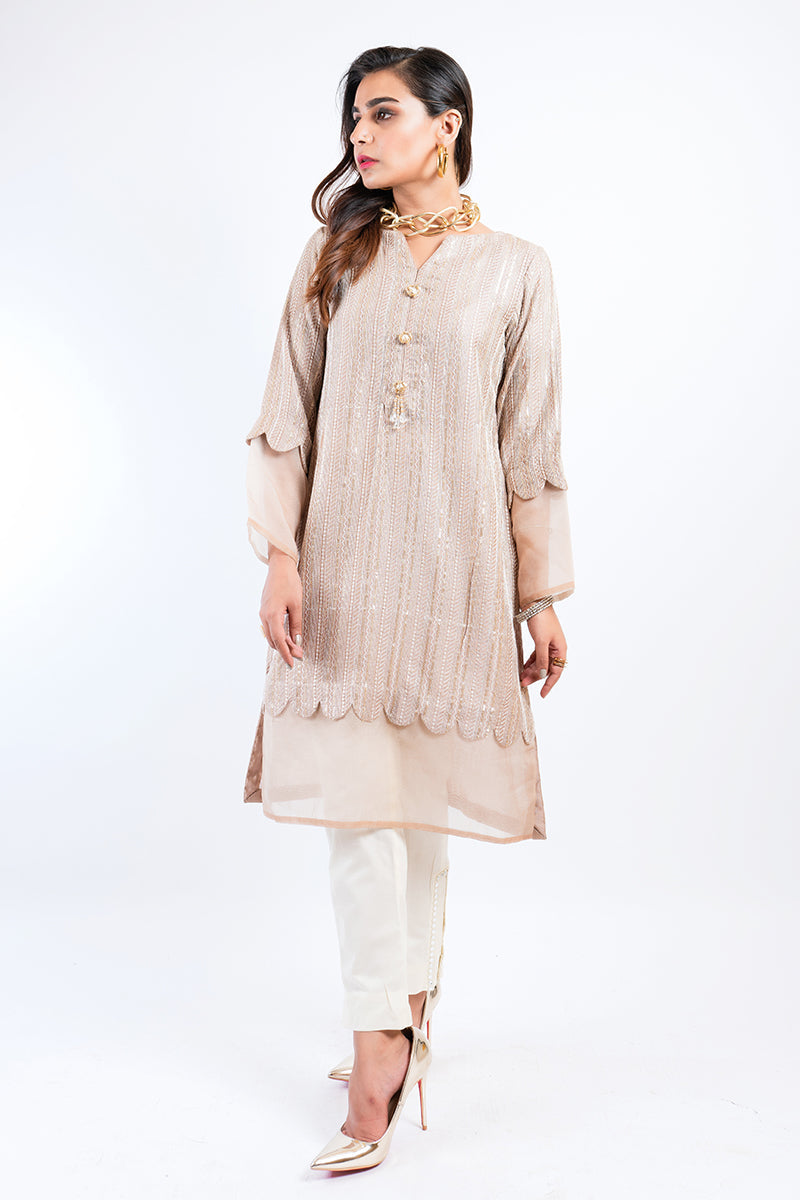 A mythical tale sewn into this fabulous kurta. With organza borders and a gold embellish work, this kurta is a must have for an all season use.