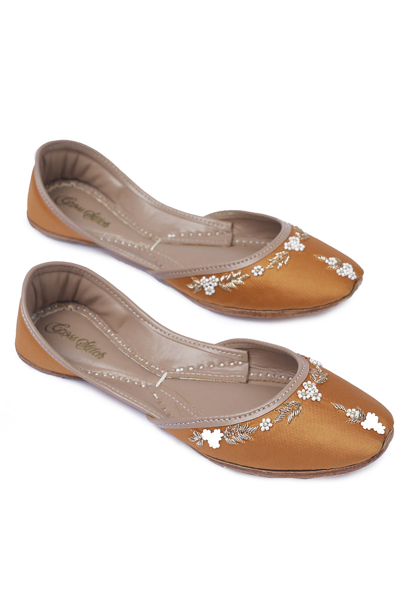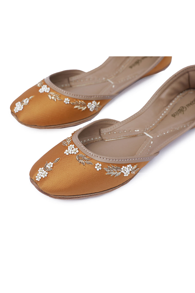 Mustard toned khussas with cut dana and tilla work to grace wherever you go.