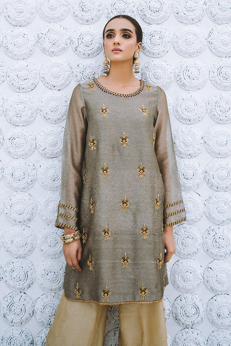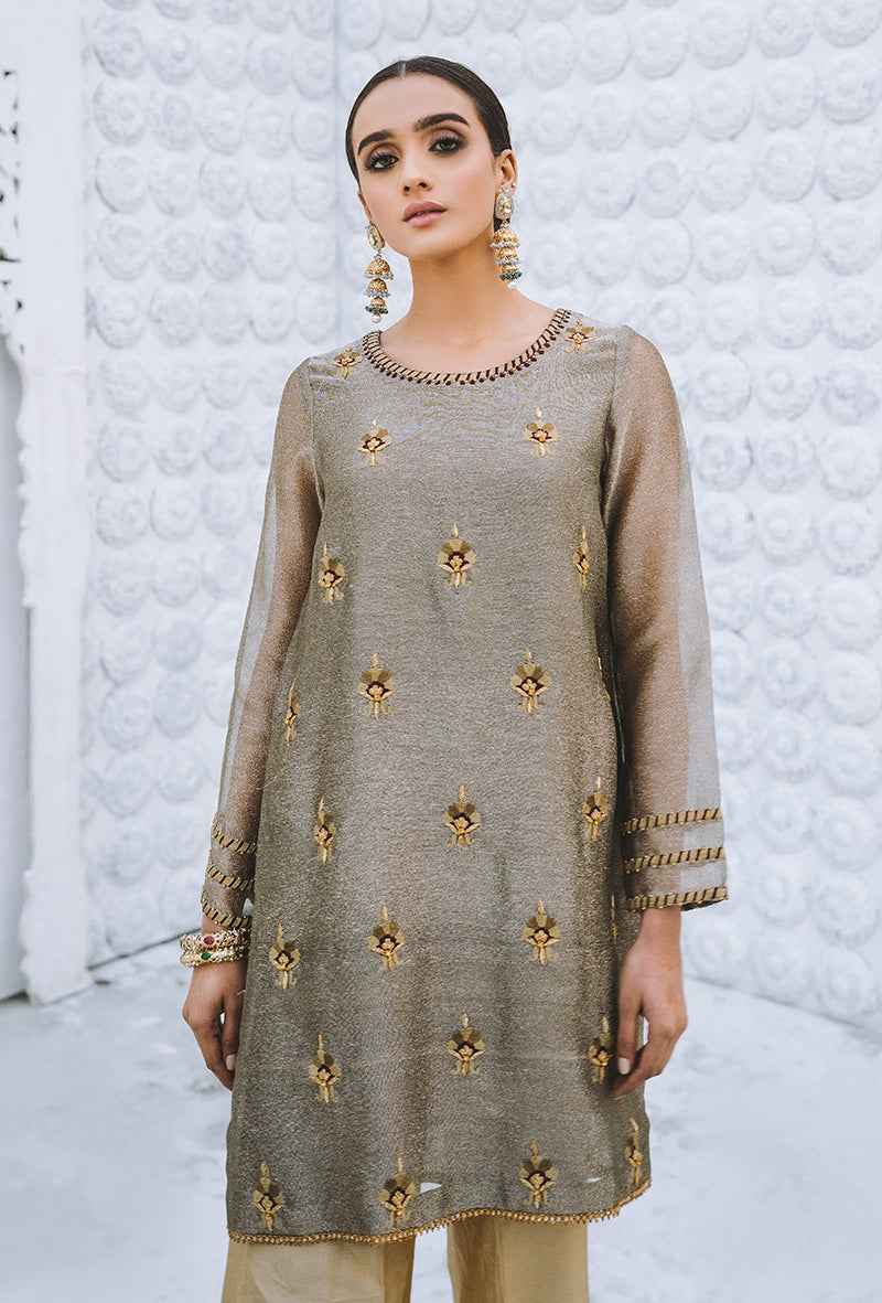 LUXURY PRET - EMBELLISHED CHIFFON SILK TUNIC (slip Included)