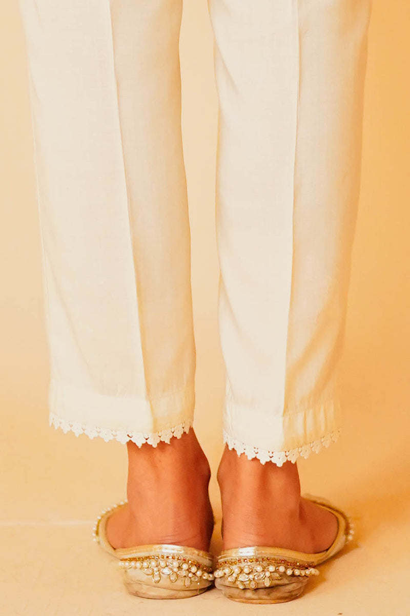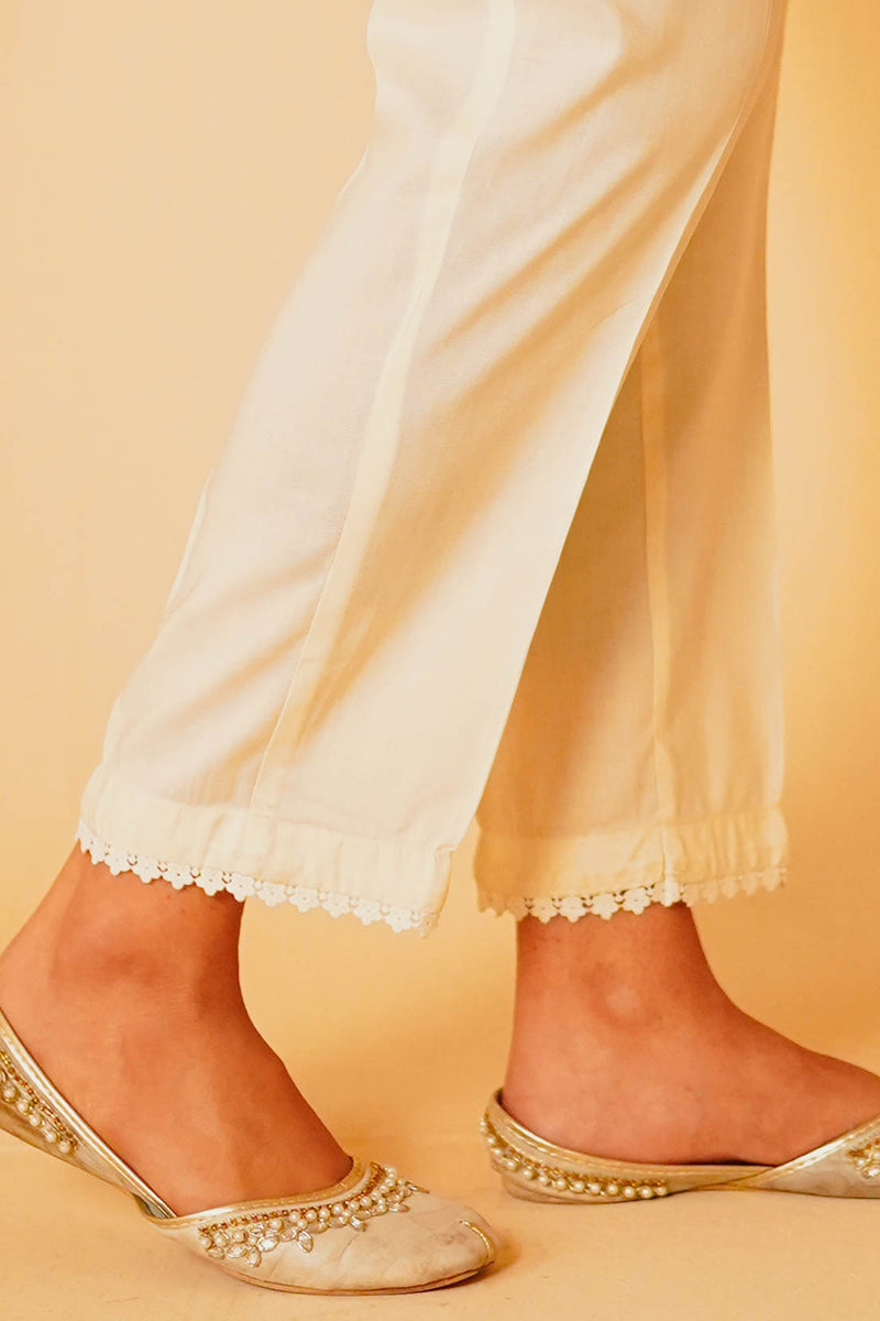 STRAIGHT FITTED LINEN PANTS WITH LACE